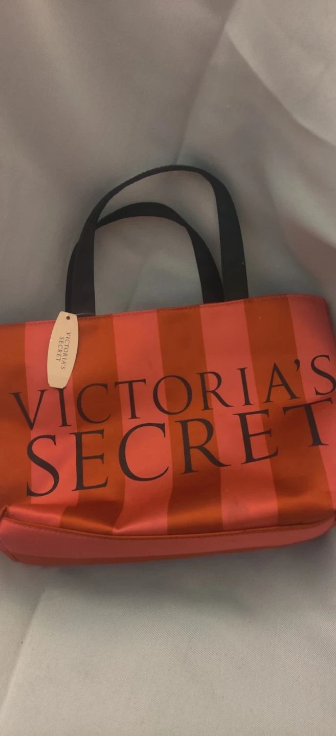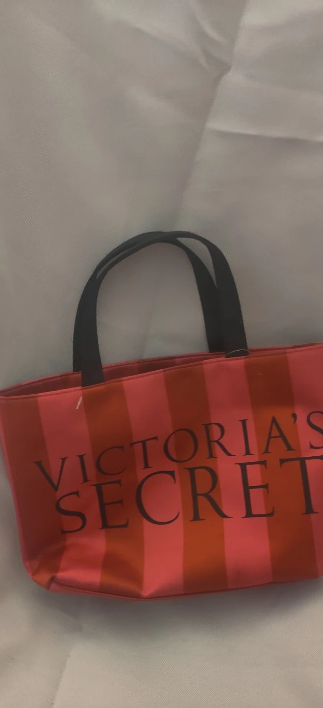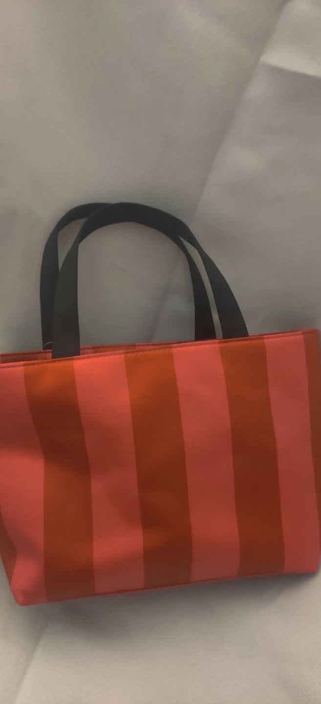 Cute pink and red striped tote bag from Victoria's Secret. It's lined inside and have no inside pockets