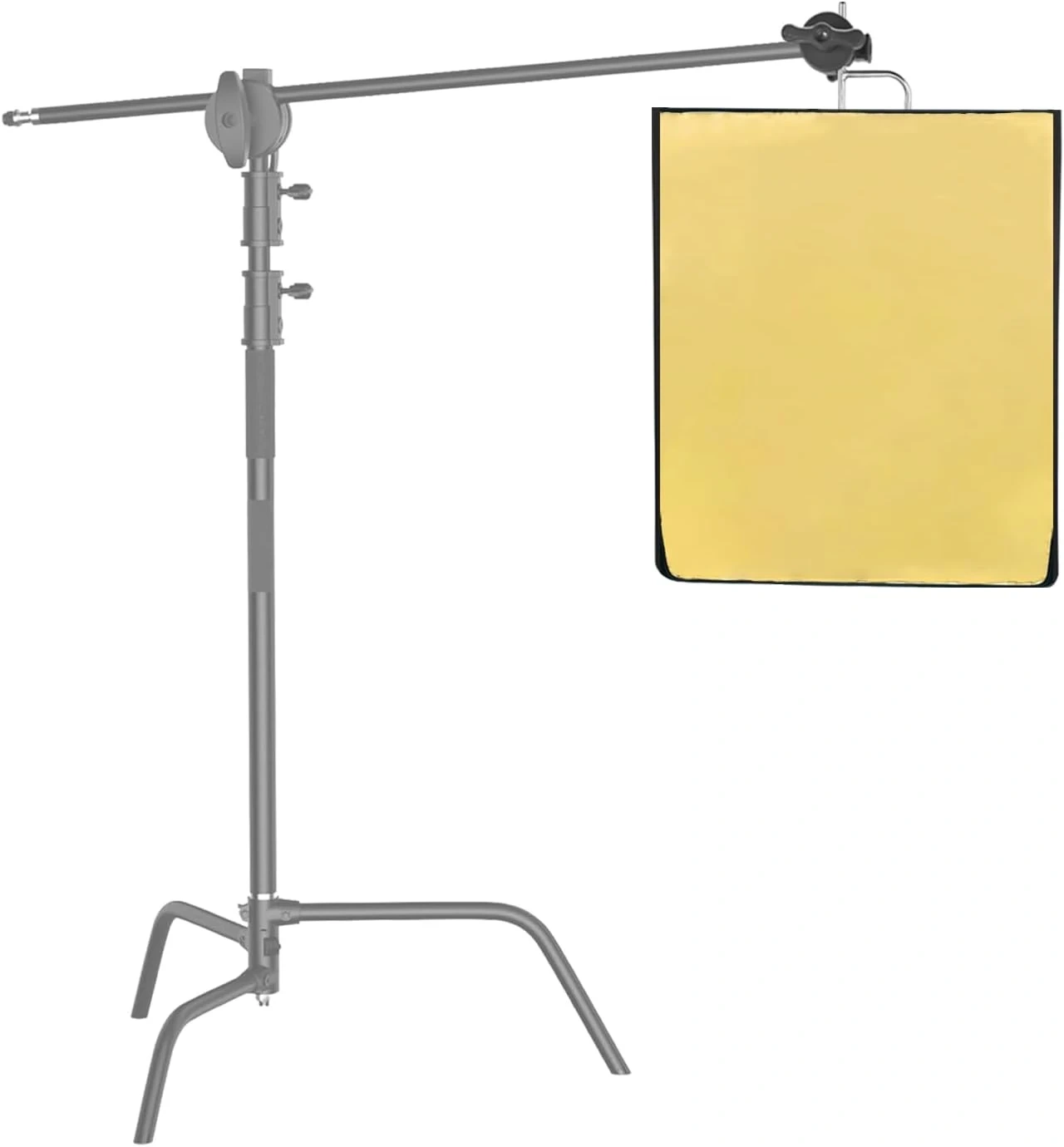VERSATILE KIT: 24x30 inch light reflector flag kit featuring a translucent diffuser and 4-in-1 reflector with gold, silver, black, and white surfaces