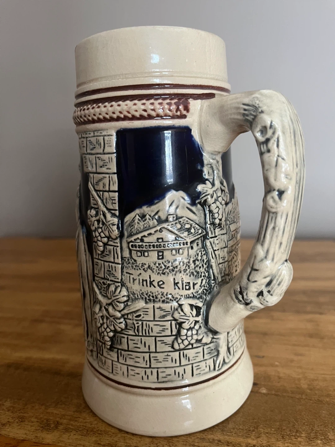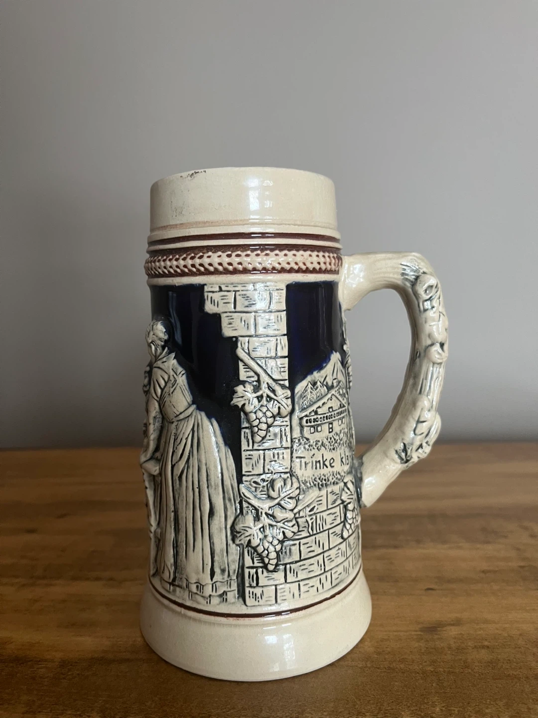Bring old world charm to your collection with this vintage ceramic beer stein by Original King that was crafted in Western Germany.