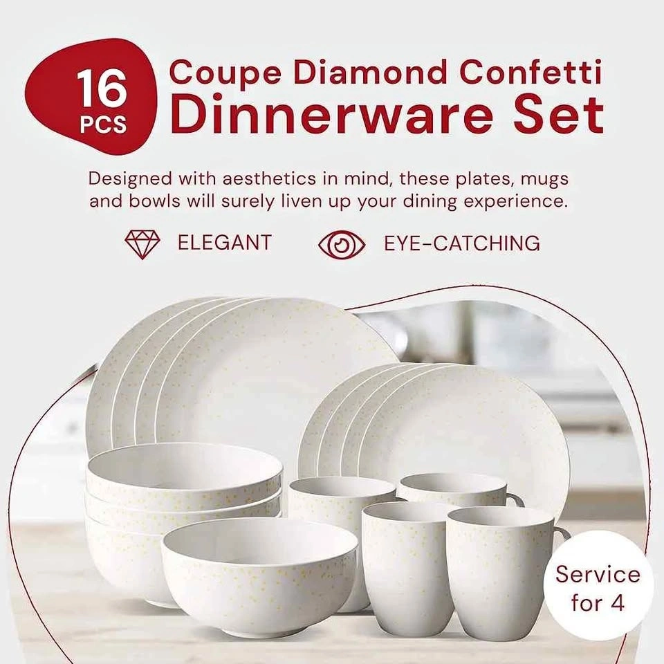 Safdie Diamond Confetti Plates & Bowls Set - 16 Pc White/Gold Ma