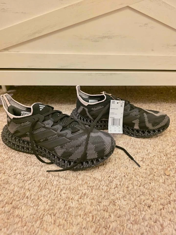 New Adidas 4DFWD 4 W sneakers in black with a 3D printed sole. Tag is still on. Size US 6.5, UK 5, EU 38, JP 235.