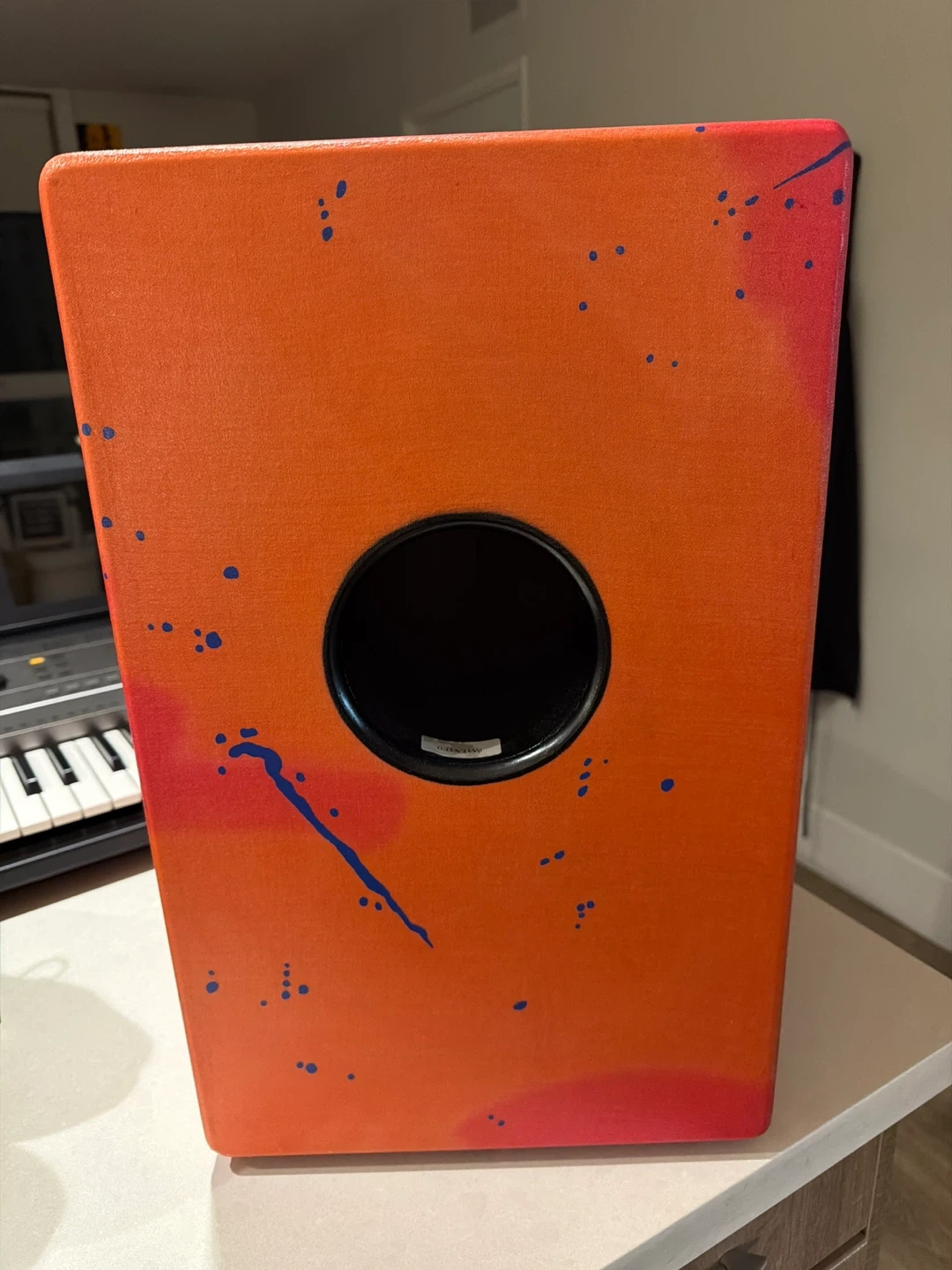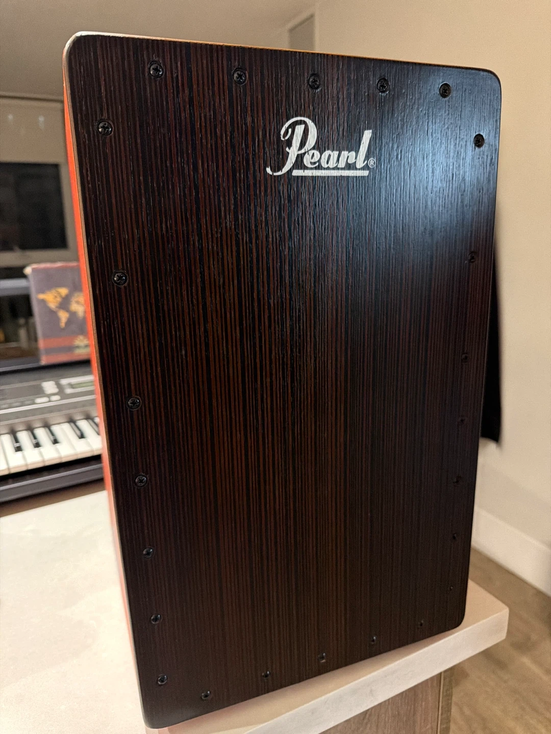 Selling a brand new Pearl Cajon percussion instrument in a beautiful orange finish. This cajon produces rich bass and crisp snare tones, making it perfect for acoustic performances, jam sessions, studio recording, or practice.