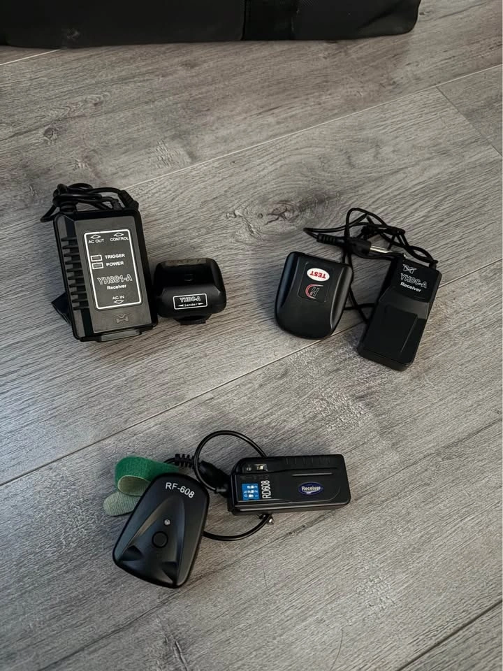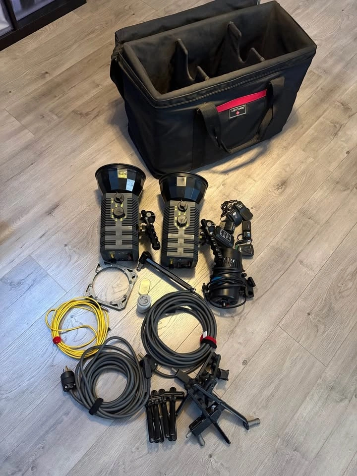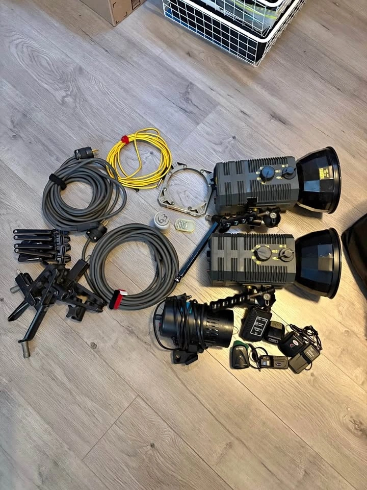 Old photography light fixtures and accessories including: Balcar mini z2 X 2 with power cables, Nadel OPL M100, Manfrotto clamps for light attachment X 2, small clamps X 4, receivers X 3, and a professional bag to hold everything! Located in Richmond. Price negotiable.