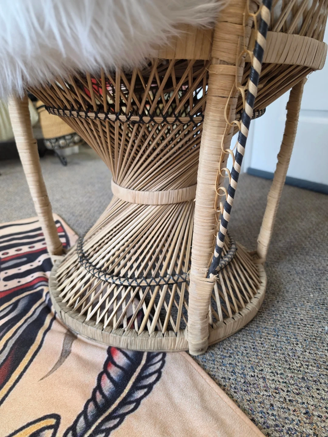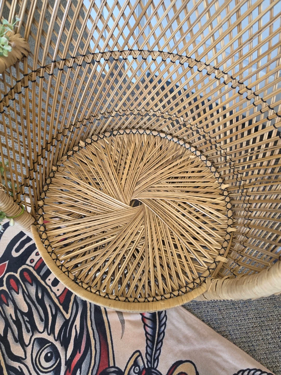 Vtg Wicker Peacock Chair with Floral Decor