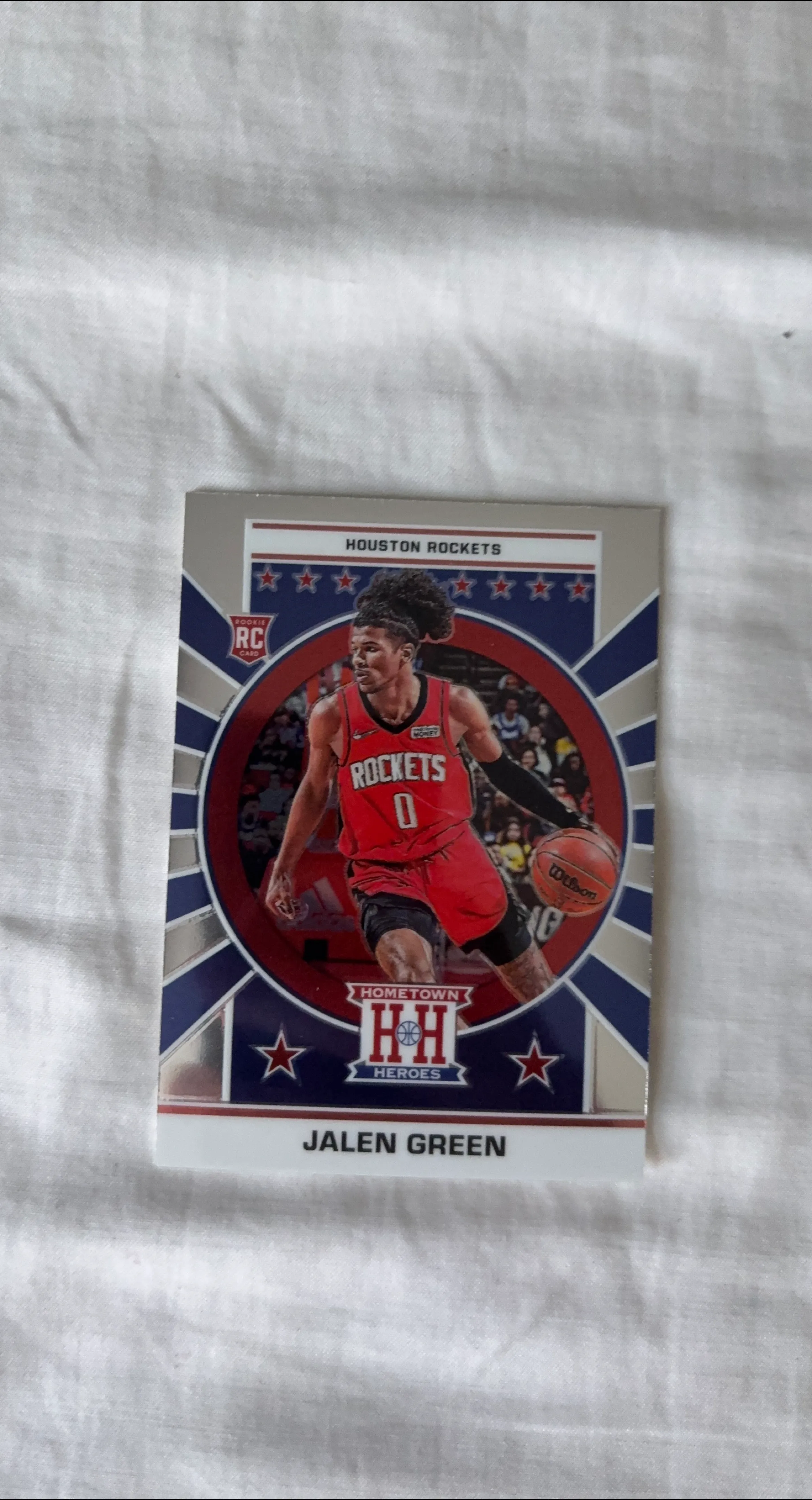 Selling a Jalen Green Houston Rockets Rookie Card from the Hometown Heroes collection! It's in great condition and would be a fantastic addition to any basketball card collection