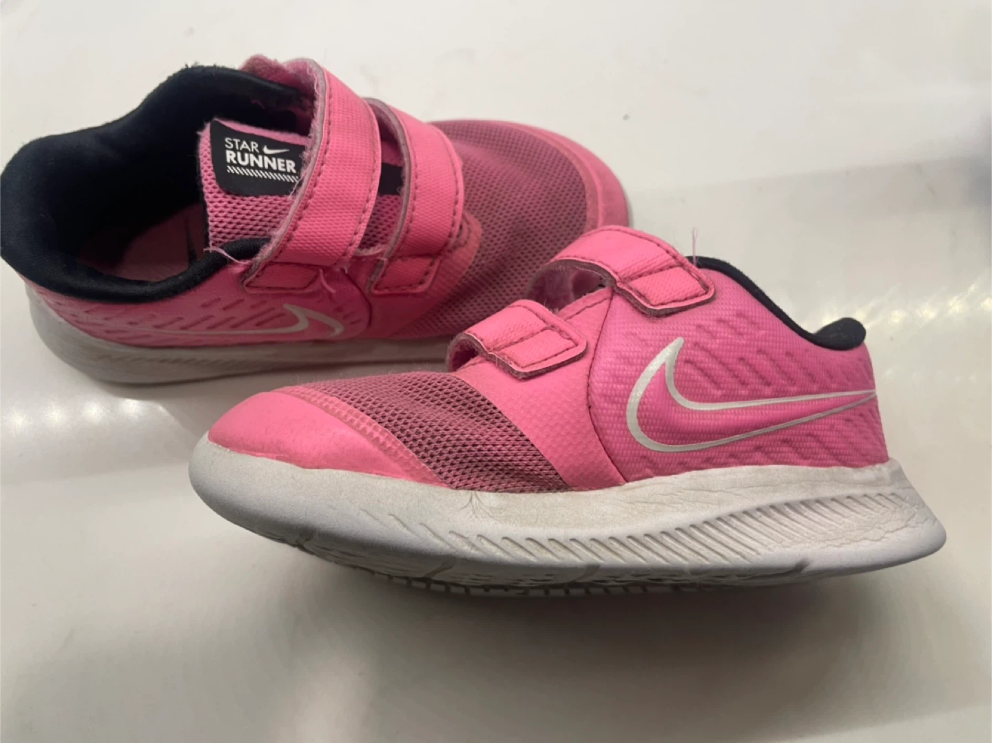 Selling a pair of Nike Star Runner toddler shoes in size 8C. They're pink and have a velcro closure, making them easy for little ones to put on and take off. Perfect for running around!