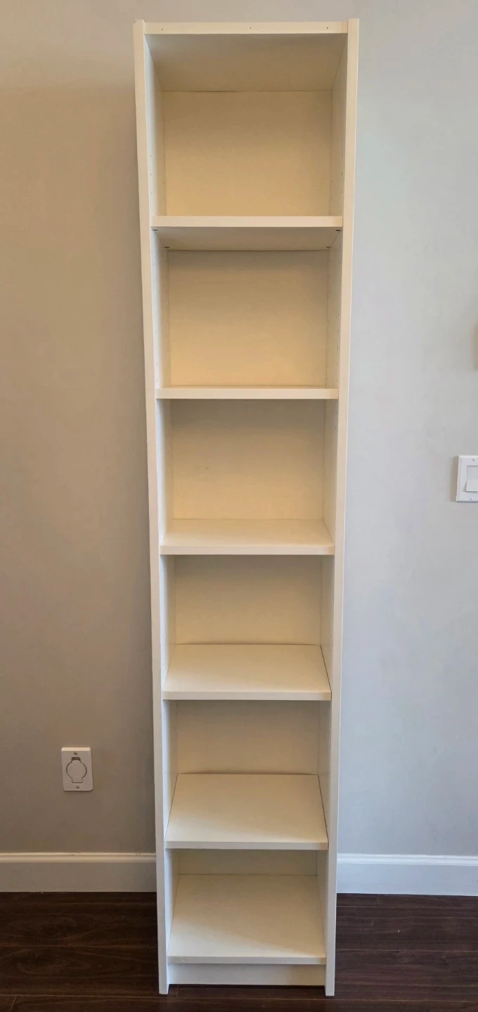 Buy & SellIKEA Billy BookcaseIKEA Billy Bookcase$20White IKEA Billy bookcase. It's a tall, narrow unit with five shelves.WHERE TO MEETCheck LocationView MapSELLERMarClayton898 reviews1 chats·1 favorites·34 viewsSEND CHAT TO SELLERHi Mar! I’m interested in your listing.Hi Mar! I’m interested in your listing.Get the Karrot app to chatSign In to chat