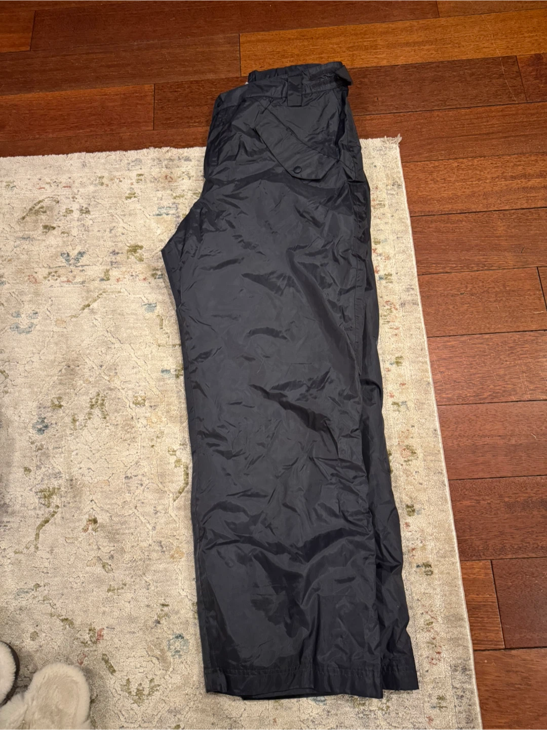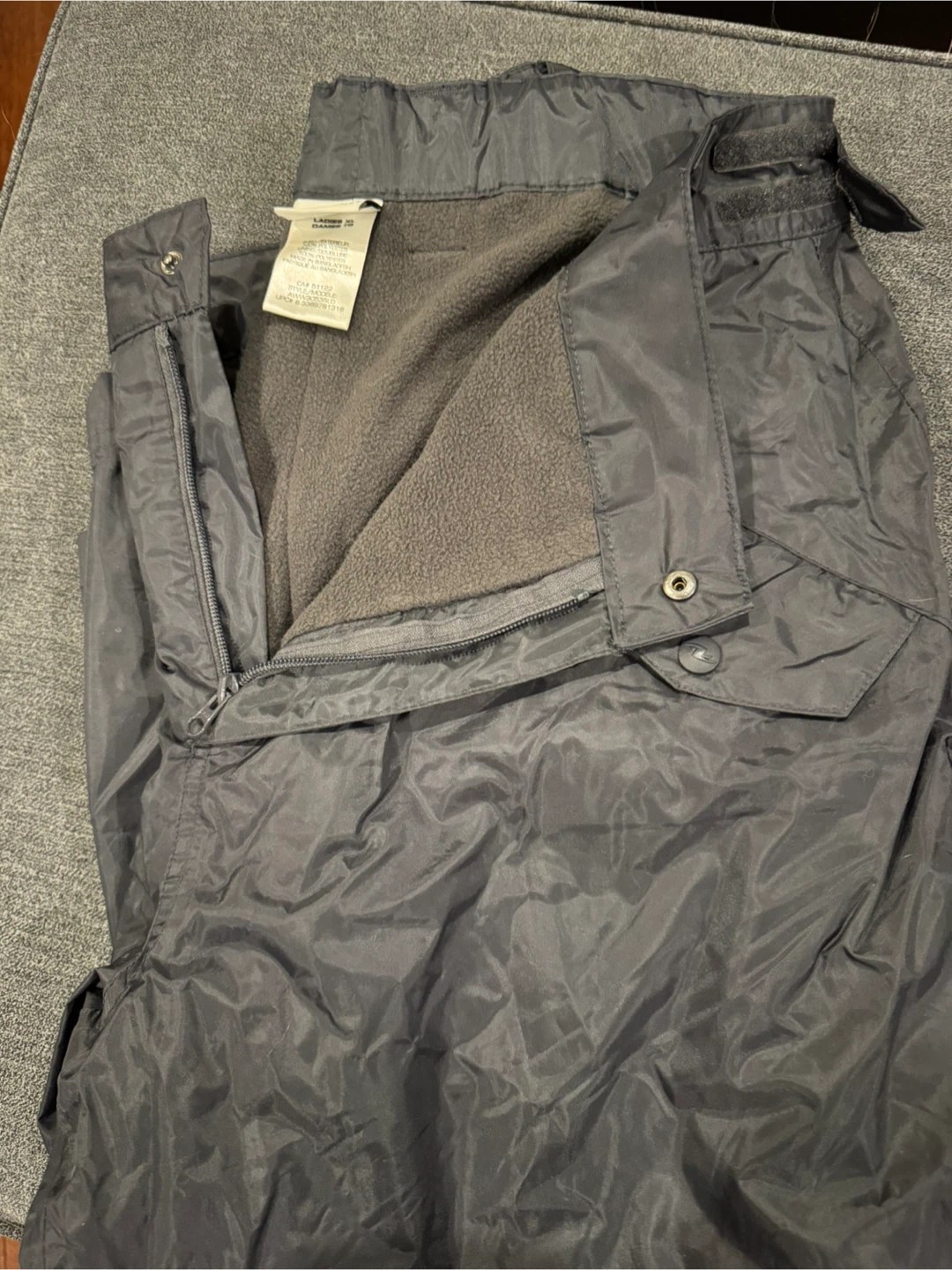Athletic Works women's snow pants, perfect for keeping warm and dry this winter! They're made of 100% polyester with polar fleece lining. They are in great condition and fit more like a large rather than XL on tag ,in my opinion. Velcro pockets on front and elastic cuffs at bottom.