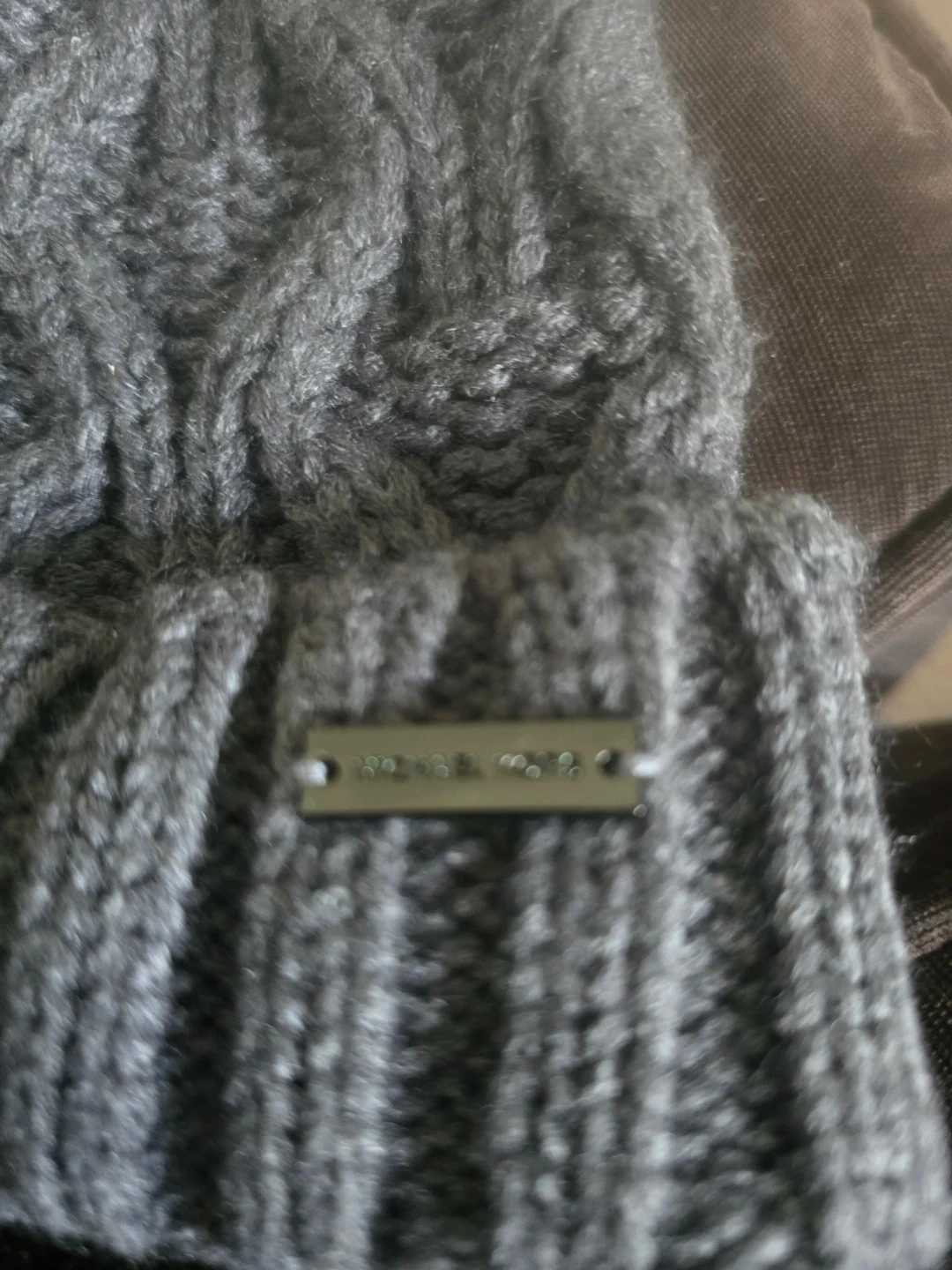 This Michael Kors beanie is a stylish grey colour with a classic cable knit pattern. It's size M/L and made from a soft material. Keeps your head warm on chilly days!