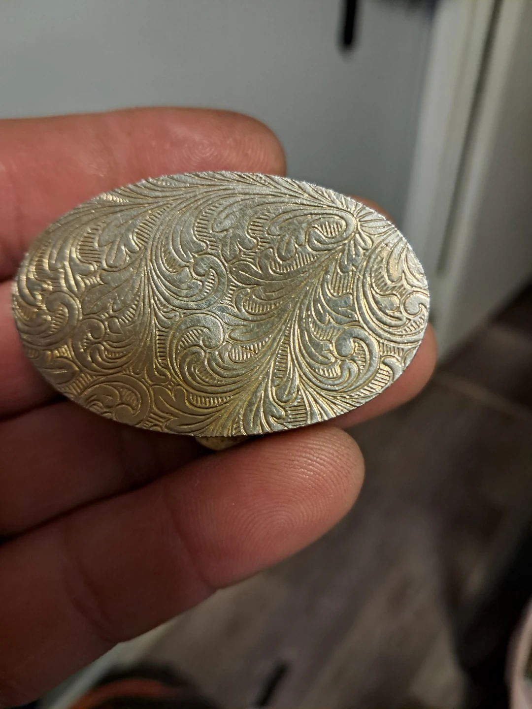 Selling a vintage pill box with a gold and silver design. It's in good condition and perfect for carrying small items or medications. The intricate floral pattern adds a touch of elegance to this functional piece