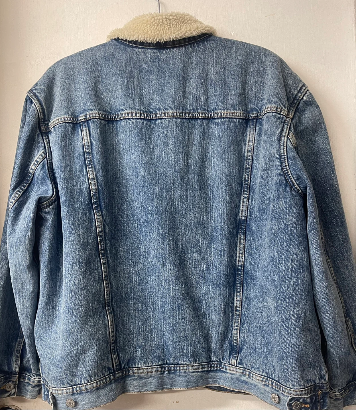 Item: denim jacket w/ Sherpa lining and collar.