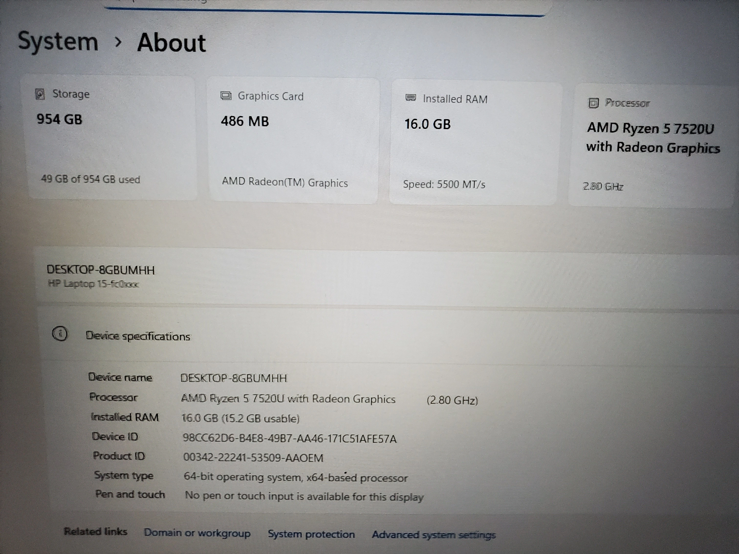 15.6" HP Laptop, AMD Ryzen 5 | 16GB RAM | 1TB SSD