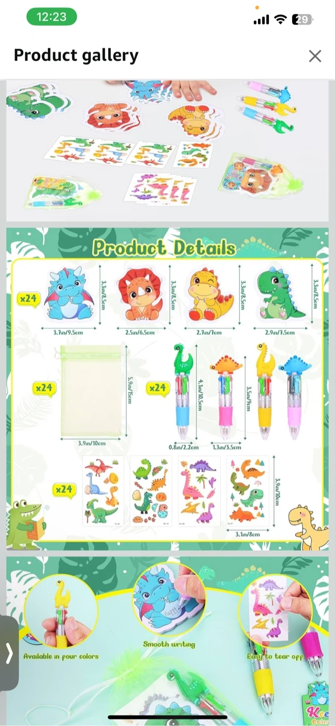A fun set featuring dinosaur stickers and colourful pens. Includes temporary tattoos and small gift bags. Great for party favours or kids' activities!