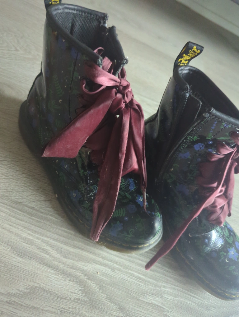 Cute pair of Dr. Martens 1460 Y boots with a floral pattern! They come with ribbon laces with missing tips and are a US size 6.