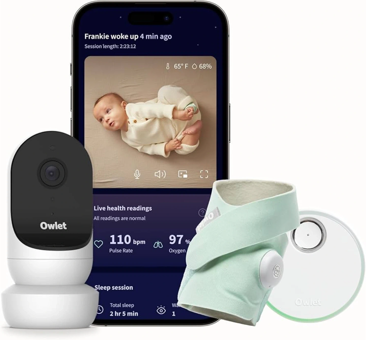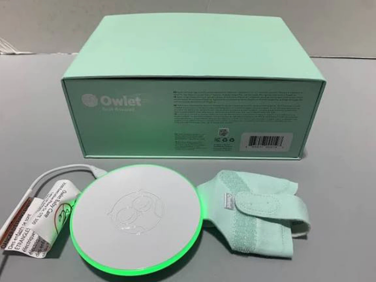This Owlet Smart Sock is designed to track baby's heart rate and oxygen levels. It connects wirelessly to a base station and an app for real-time monitoring. This set includes the sock, base station, charging cable, and power adapter. We opened and charged but ended up never using for a variety of reasons.