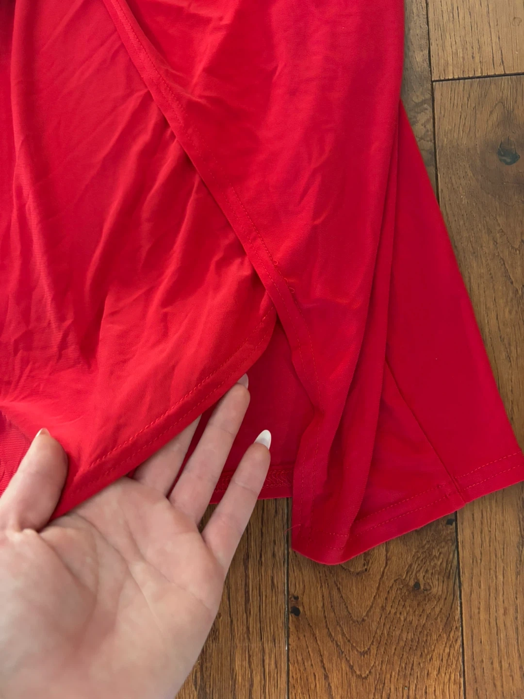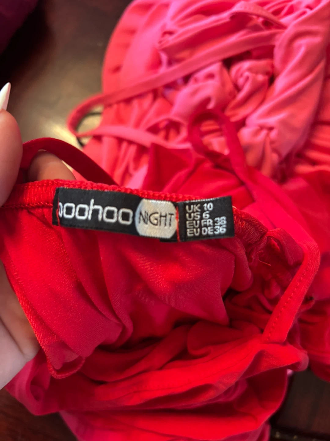 This red Boohoo Night dress features a ruched detail and a flattering skirt. It's made from a comfortable stretchy fabric. Perfect for a night out! Size medium