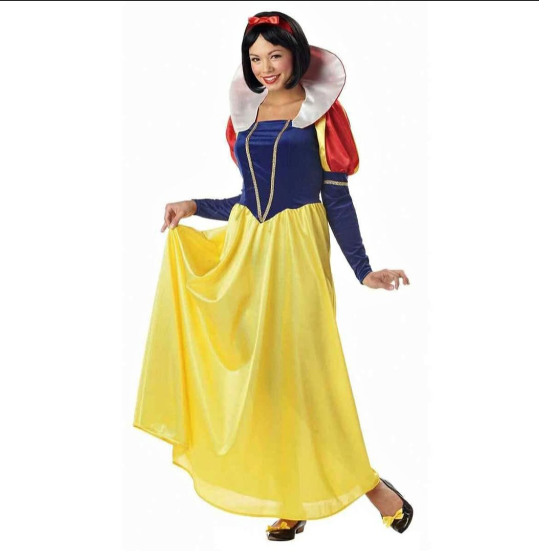 Selling a Snow White costume dress. It features the classic Snow White colour scheme of yellow, blue, red and white. Great for Halloween or costume parties!