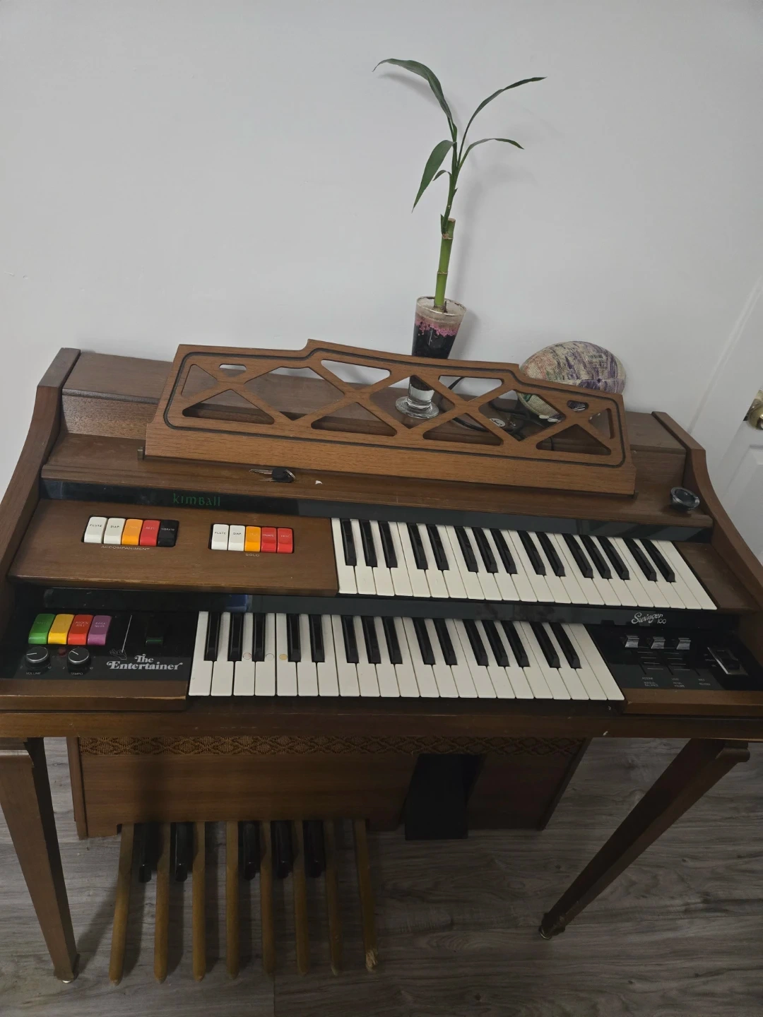 Selling a vintage Kimball The Entertainer organ. It's a beautiful piece with a classic look. Perfect for anyone interested in vintage instruments or looking for a unique musical experience!