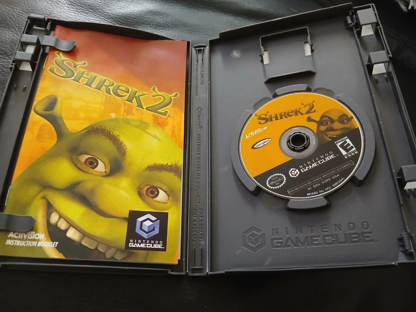 This is the Shrek 2 video game for the Nintendo GameCube. It includes the game disc and instruction booklet. The game allows players to play as a team and explore new characters and locations.