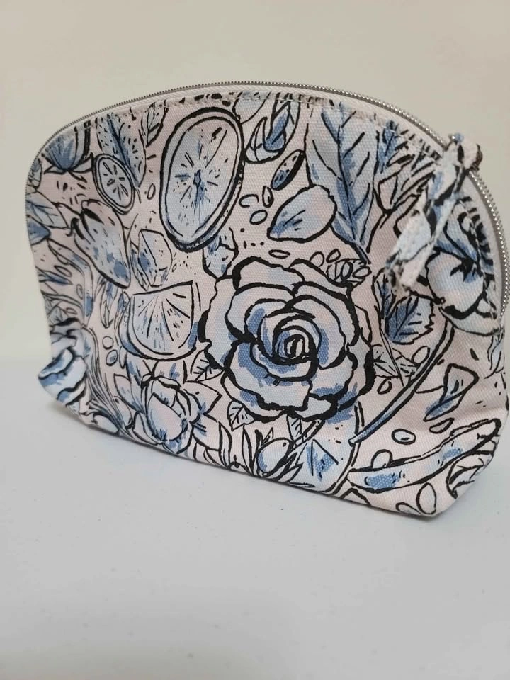 This is a set of new trial size products plus a large fabric cosmetic bag. Includes: