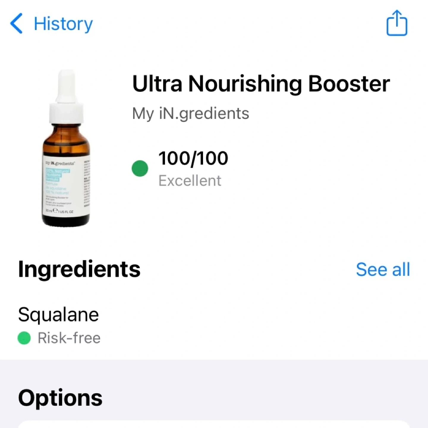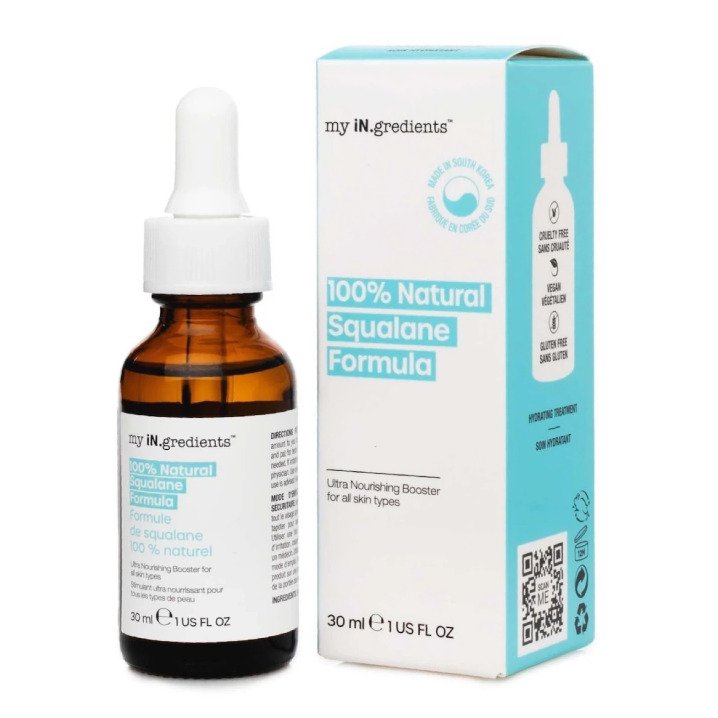 This is My IN.gredients 100% Natural Squalane Formula. It's an Ultra Nourishing Booster for all skin types. Bottle size is 30 ml / 1 US FL OZ.