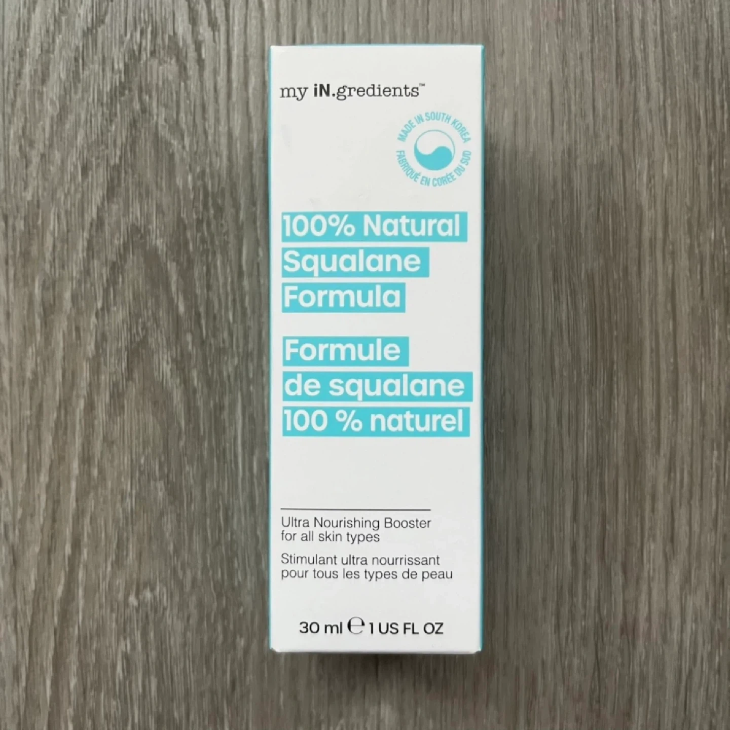 This is My IN.gredients 100% Natural Squalane Formula. It's an Ultra Nourishing Booster for all skin types. Bottle size is 30 ml / 1 US FL OZ.