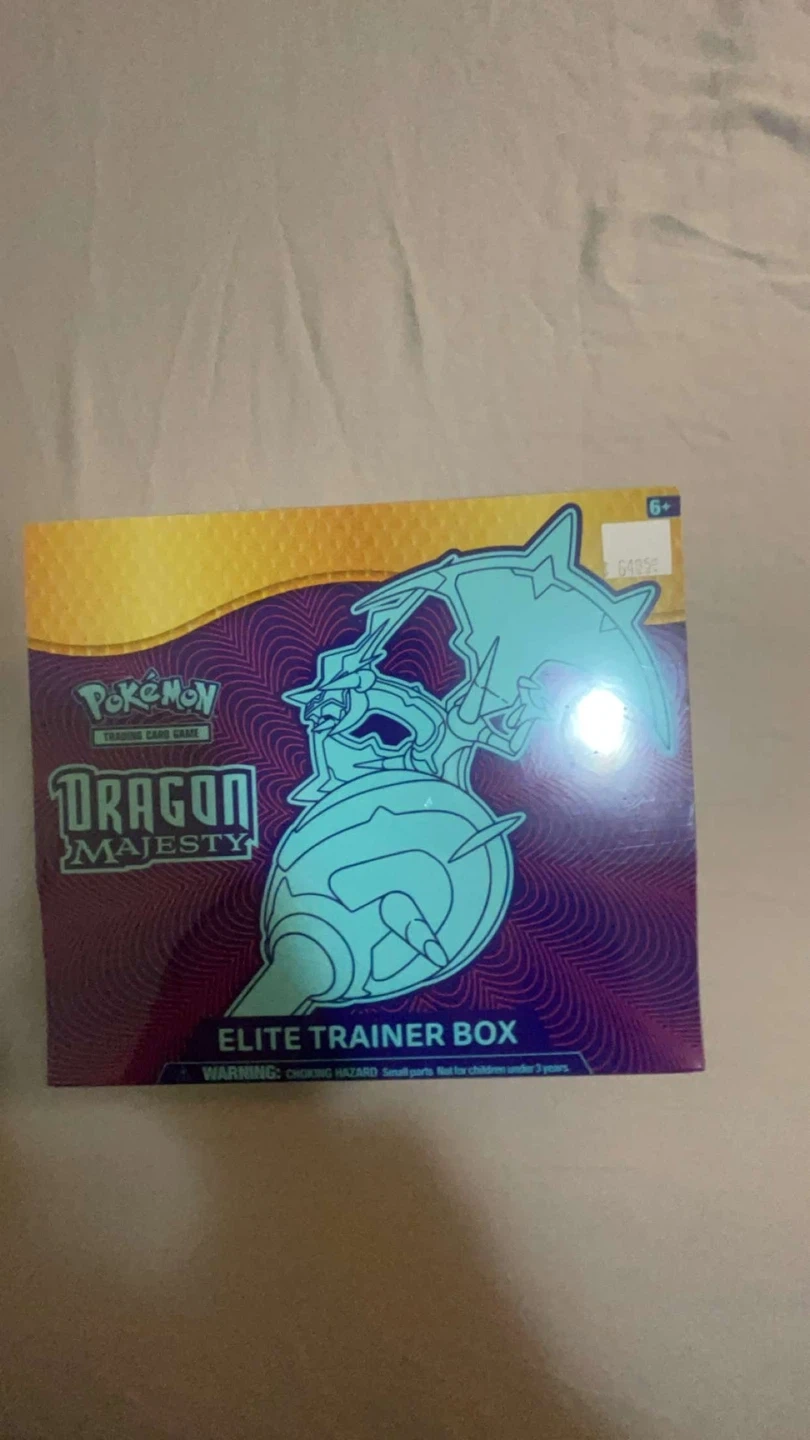 This is the Pokemon Dragon Majesty Elite Trainer Box. It's a sealed collectible for trainers. The box is designed for ages 6 and up.