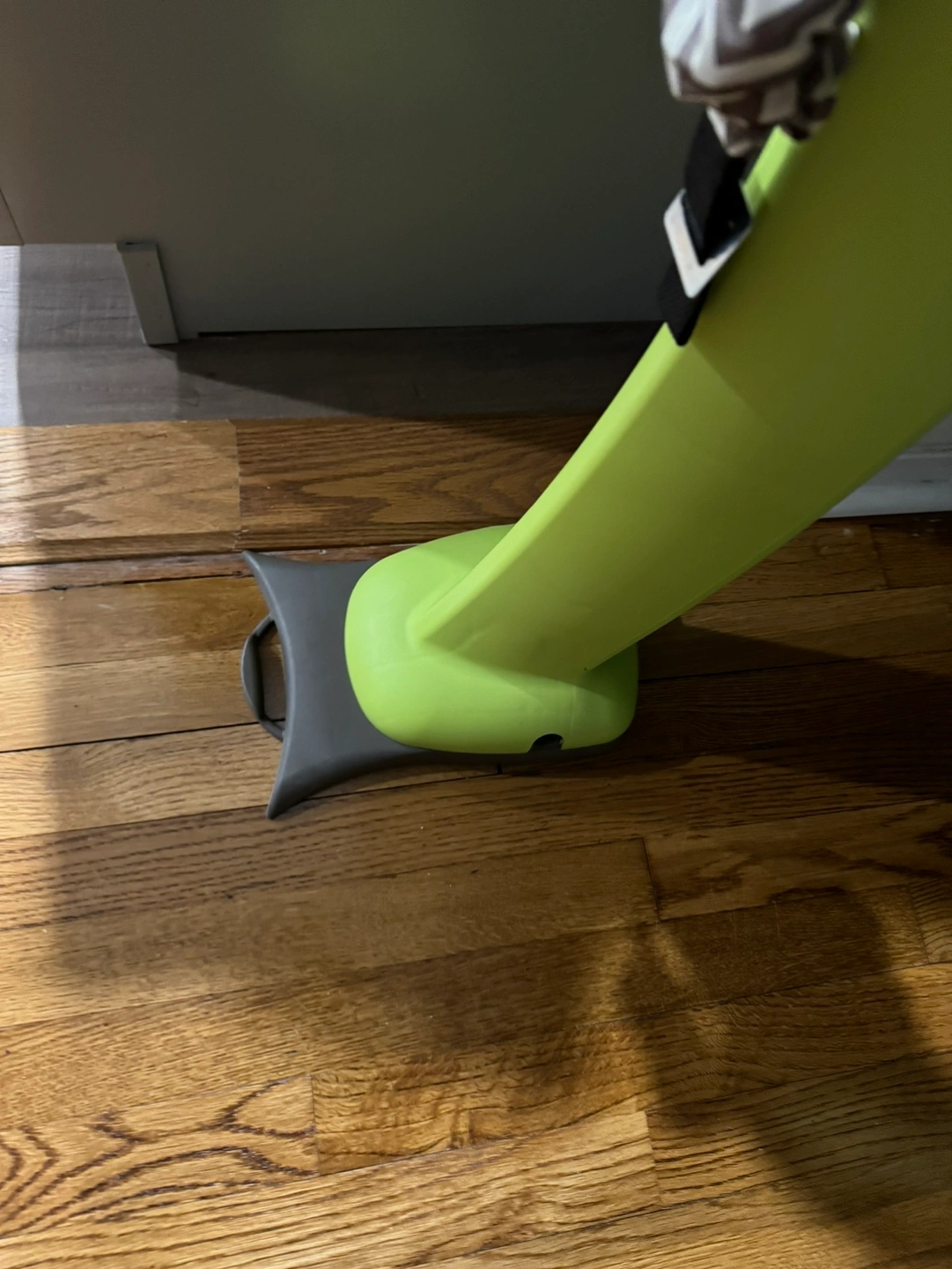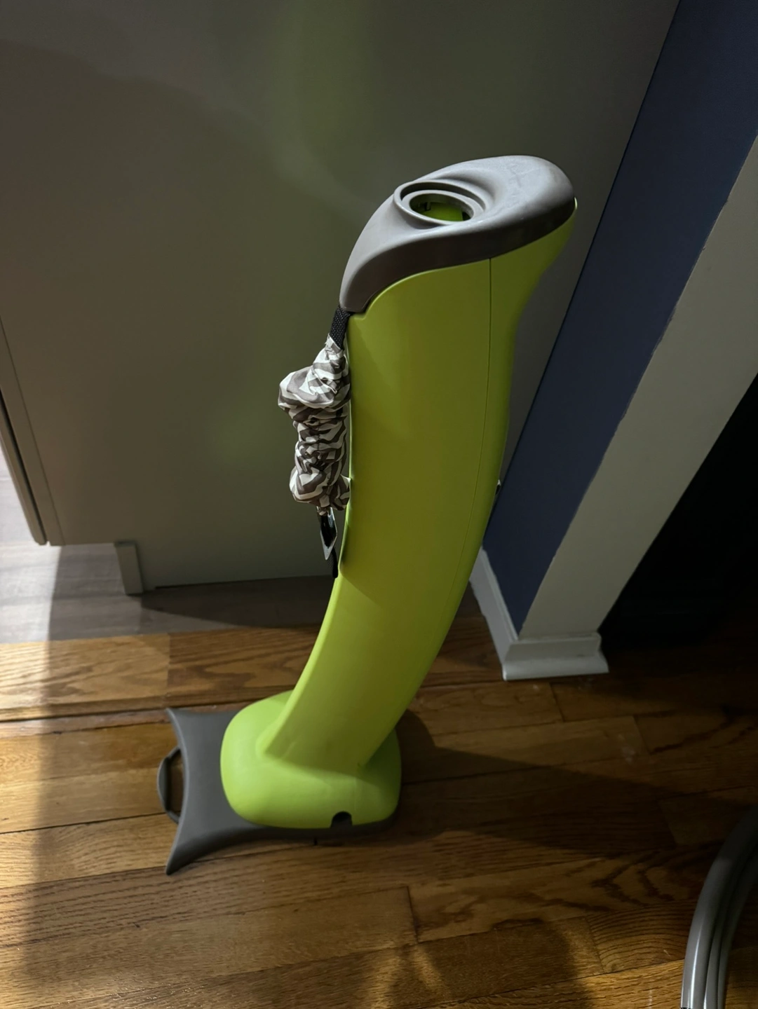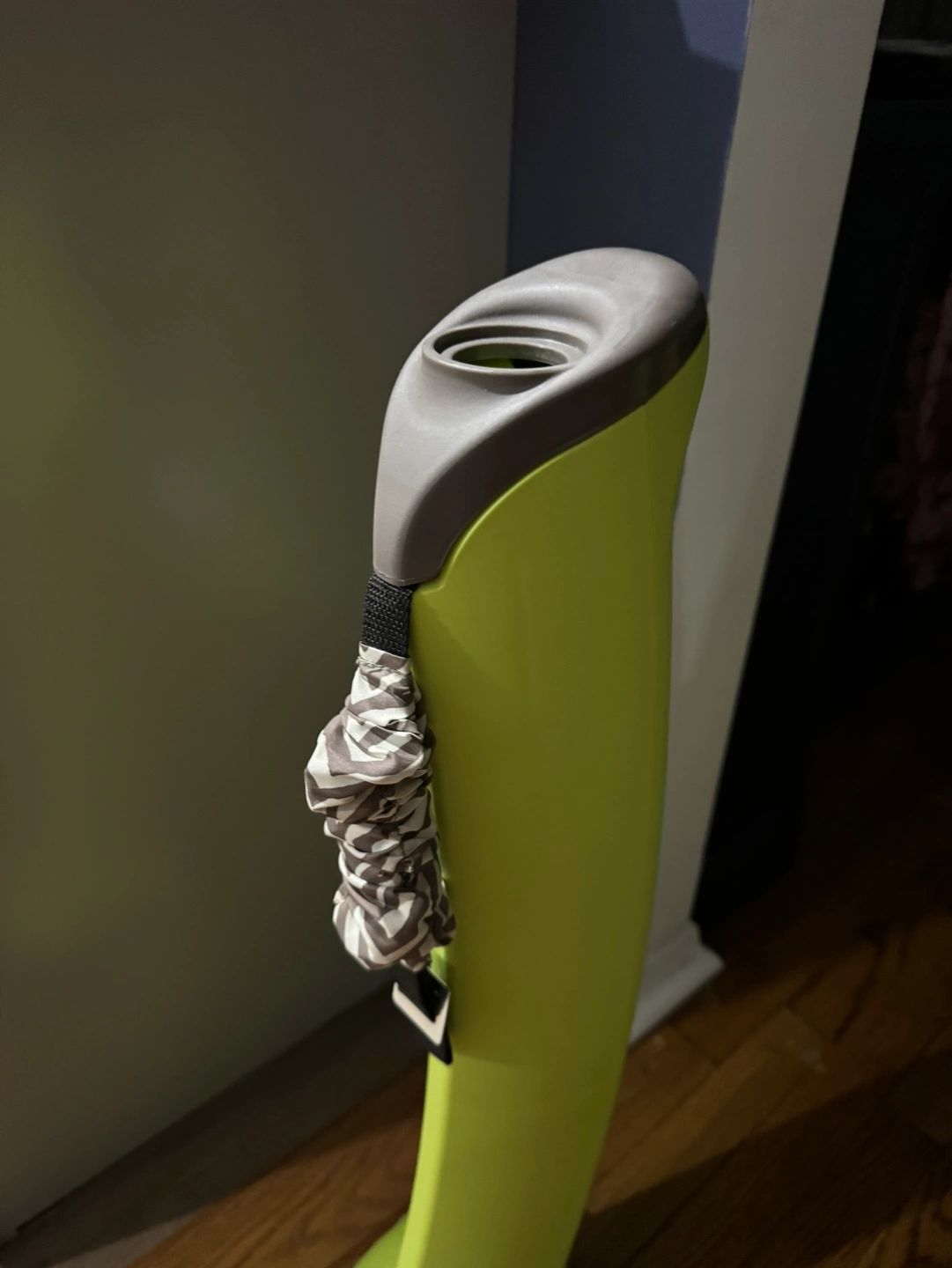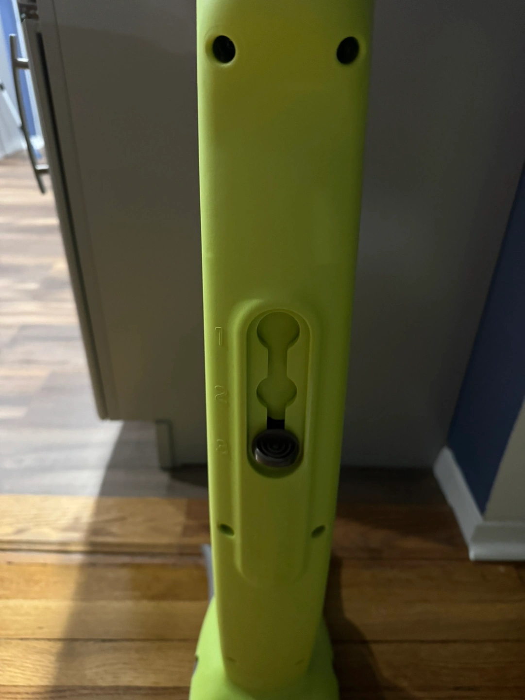 Evenflo Exersaucer Jump Learn Activity Center Replacement Pylon in green. This pylon has a brown base and includes a strap. It is compatible with the Jump Learn Activity Center.