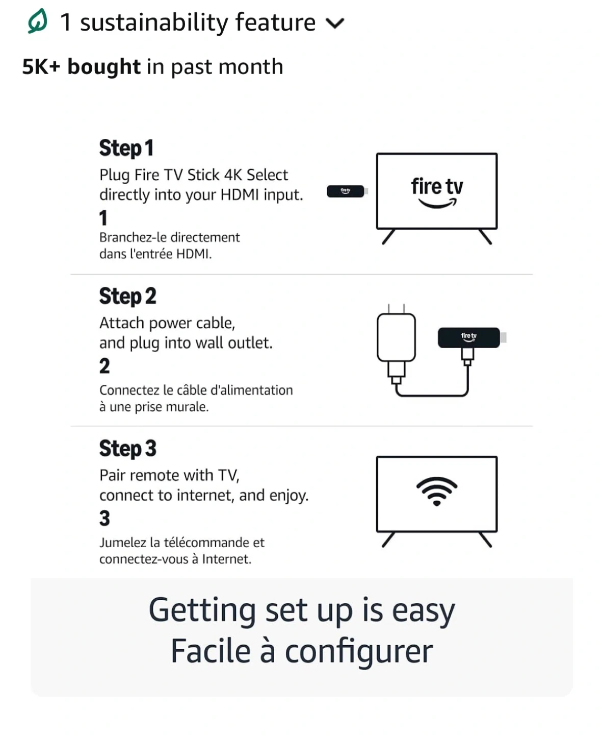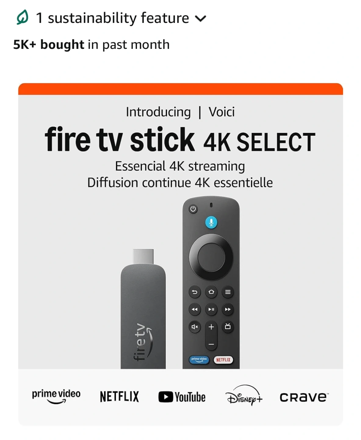 Plug in this Fire TV Stick 4K Select and stream your favourite content. It supports 4K Ultra HD and HDR for a great viewing experience. Includes Alexa Voice Remote and power adapter.