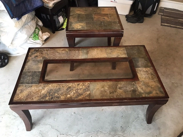 Heavy Duty Tiled Coffee Table with Mirror - Glass Chipped