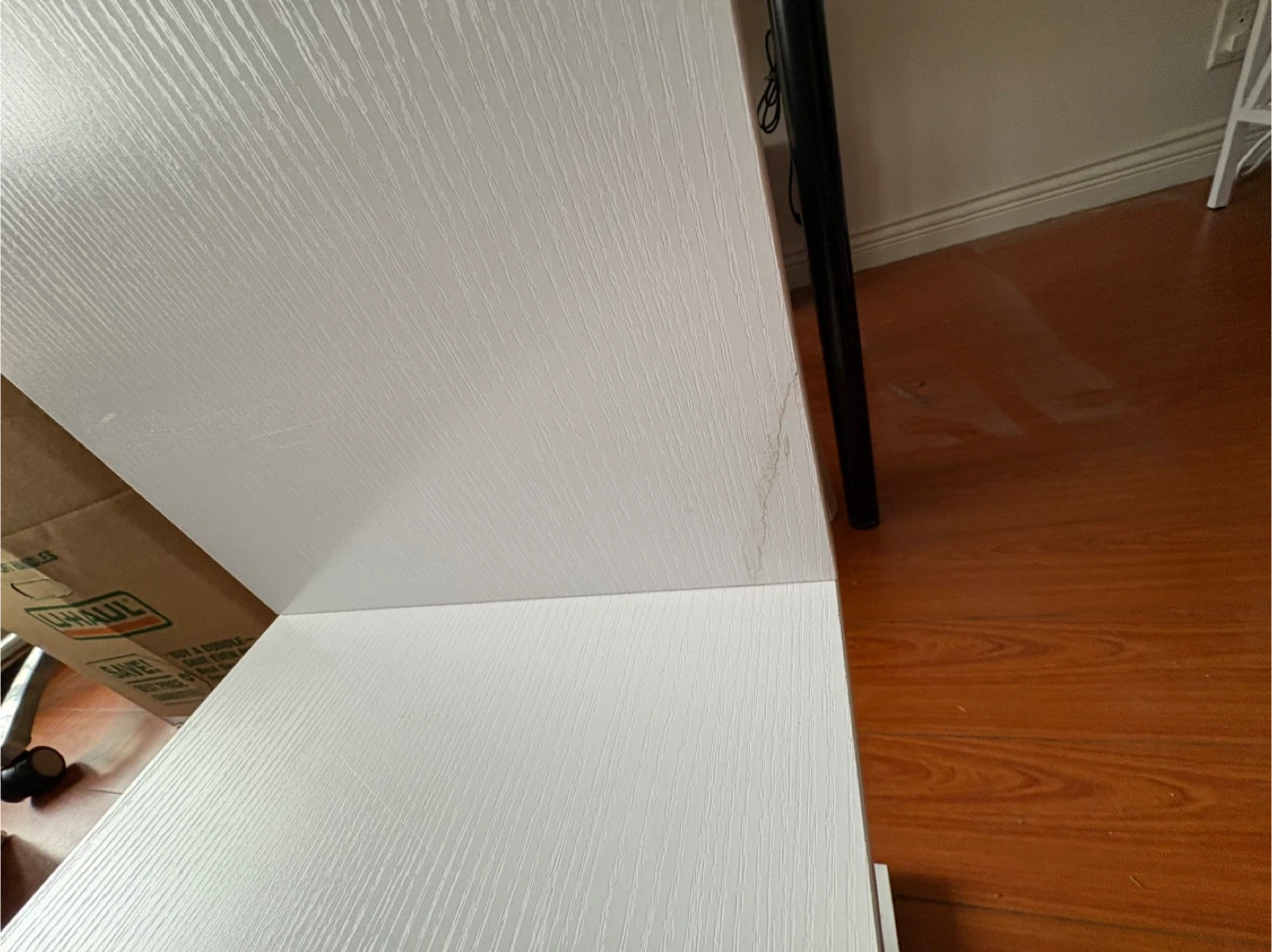 The mark is locate at the side of the 4th shelf ( see photo), like a stain. It looked like this when I first purchased it on Wayfair.