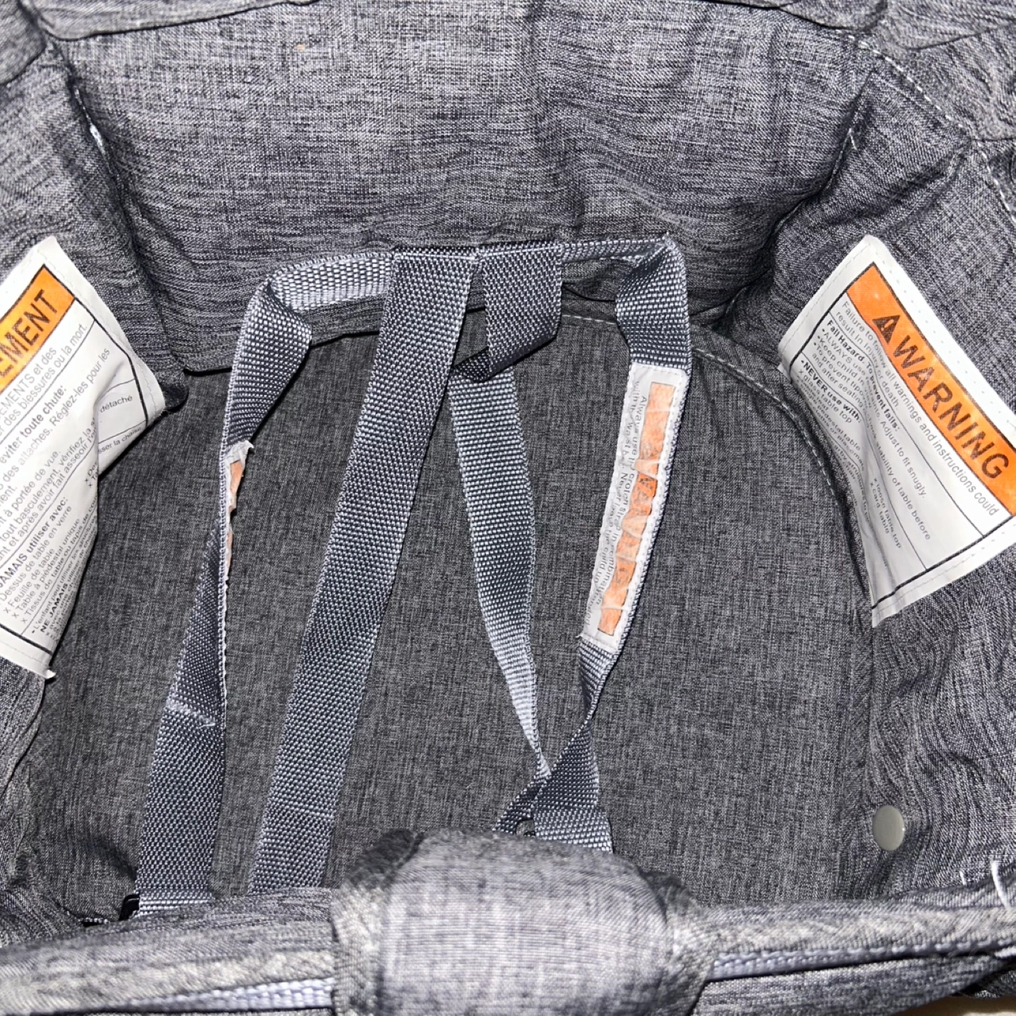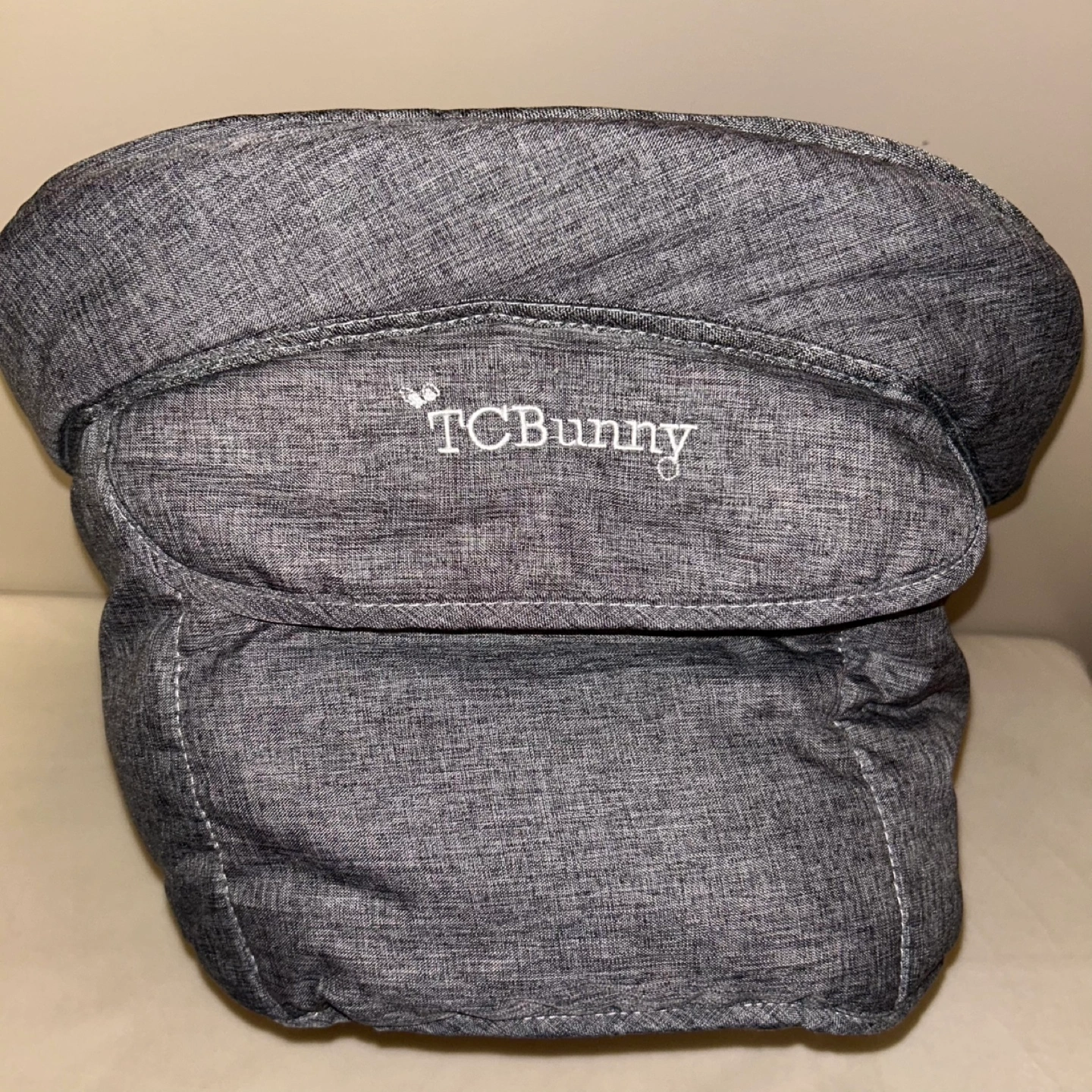 This Tcbunny baby booster seat is made from grey textured fabric. It features adjustable straps and a secure harness system. It's designed to attach to table making meal times easier for little ones.