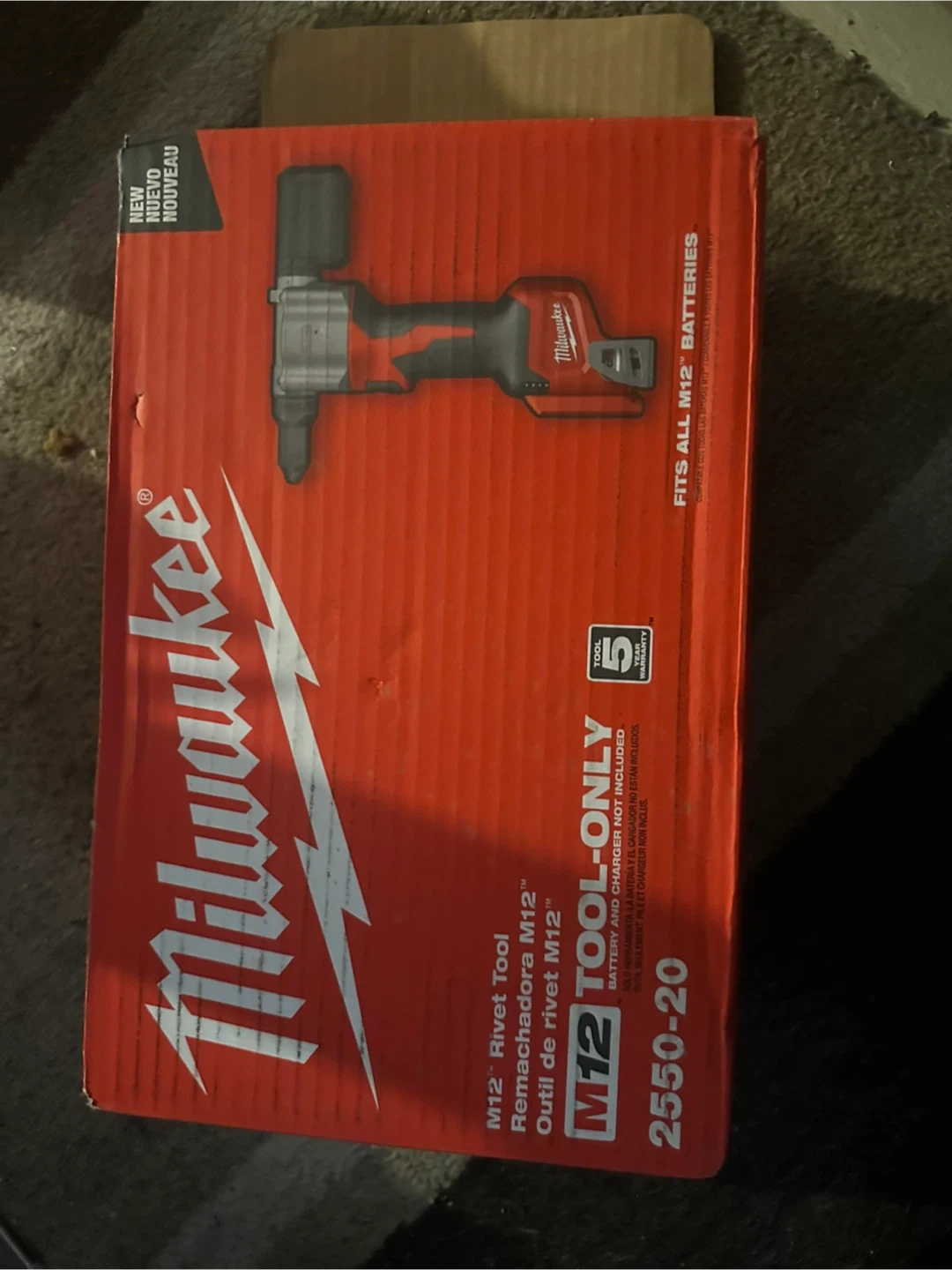 This is the Milwaukee M12 Cordless Rivet Tool. It's a tool-only item and does not include batteries or a charger. Fits all M12 batteries. BRAND NEW IN BOX NEVER USED
