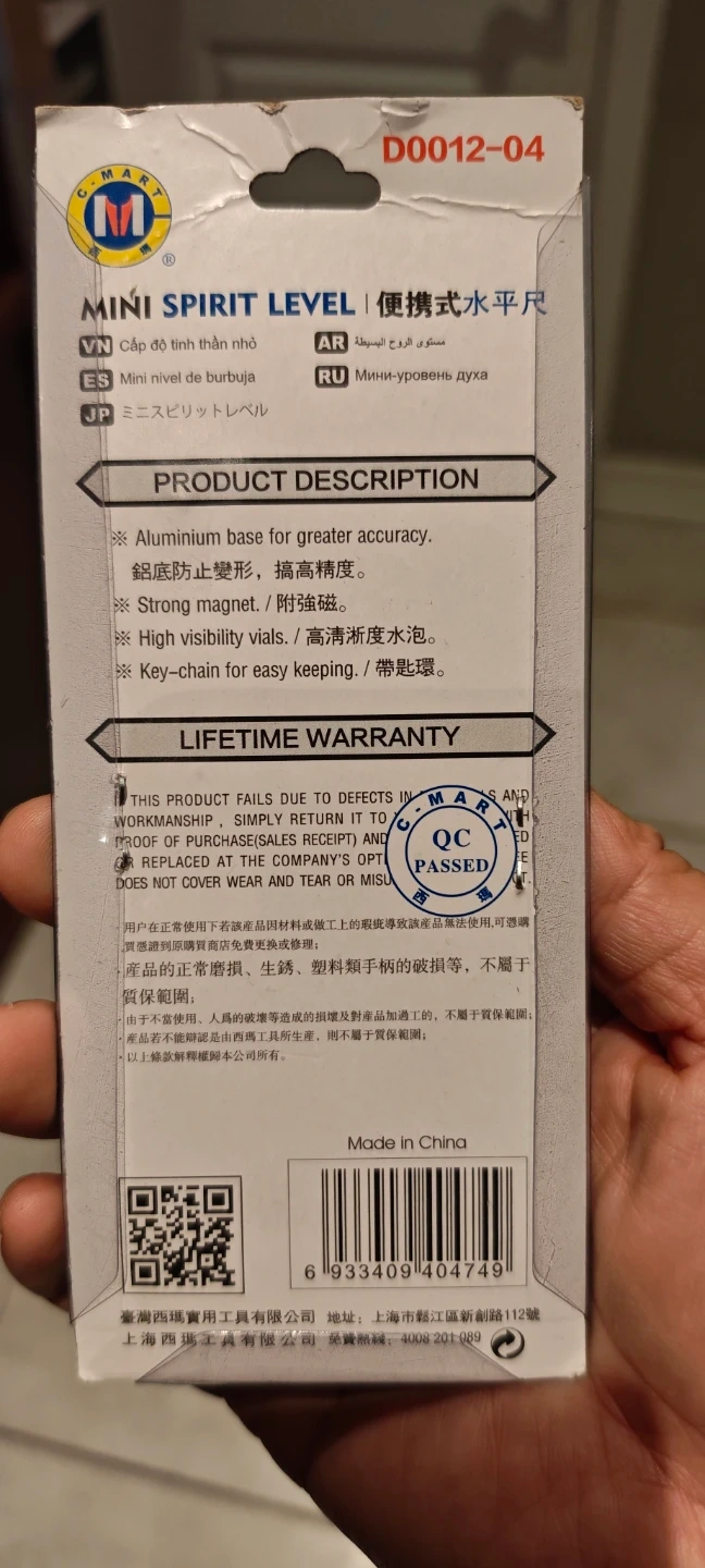 I'm selling a brand new C-Mart Mini Spirit Level, model D0012-04. It's still in its original packaging! It features:
