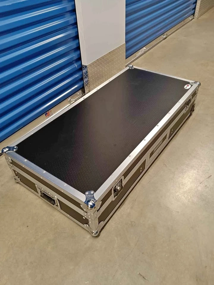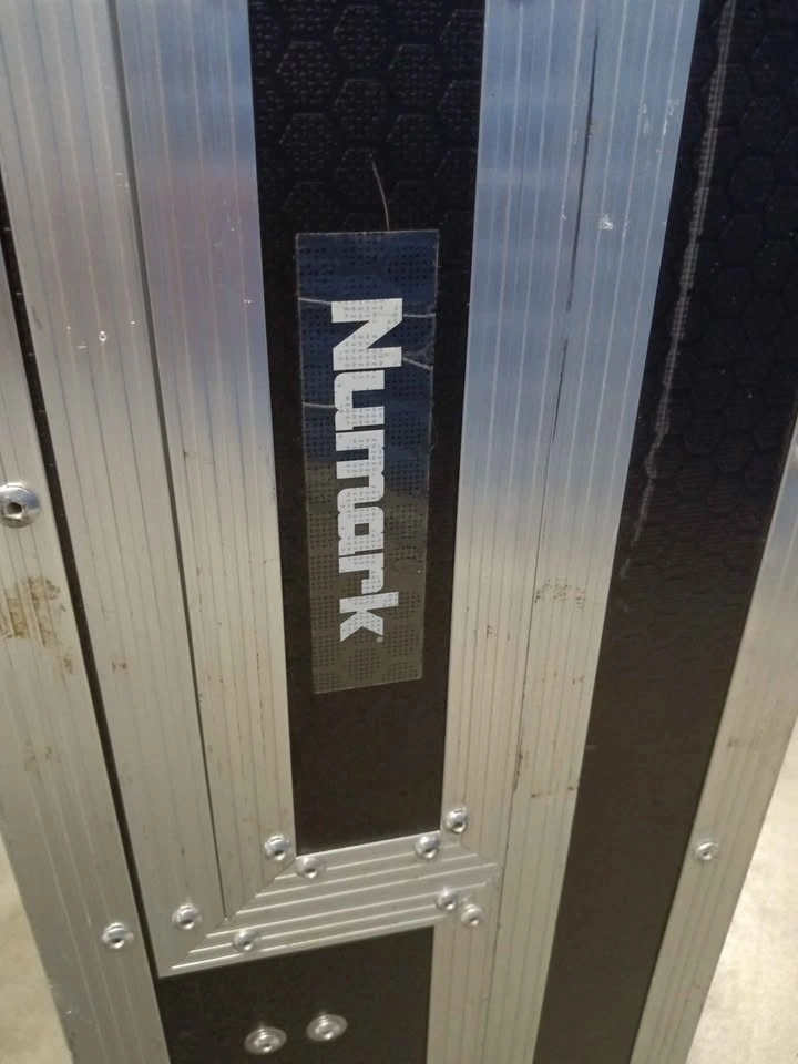 Durable ProX flight case with black honeycomb digital finish and silver aluminum trim. Features recessed spring-action handles and tough rubber wheels for easy transport. Heavy-duty ball corners and industrial-grade butterfly latches provide maximum protection. Interior is designed for Numark DJ controllers. Pick up at CubeSmart storage, 7940 Cooper Avenue, Glendale, New York 11385.