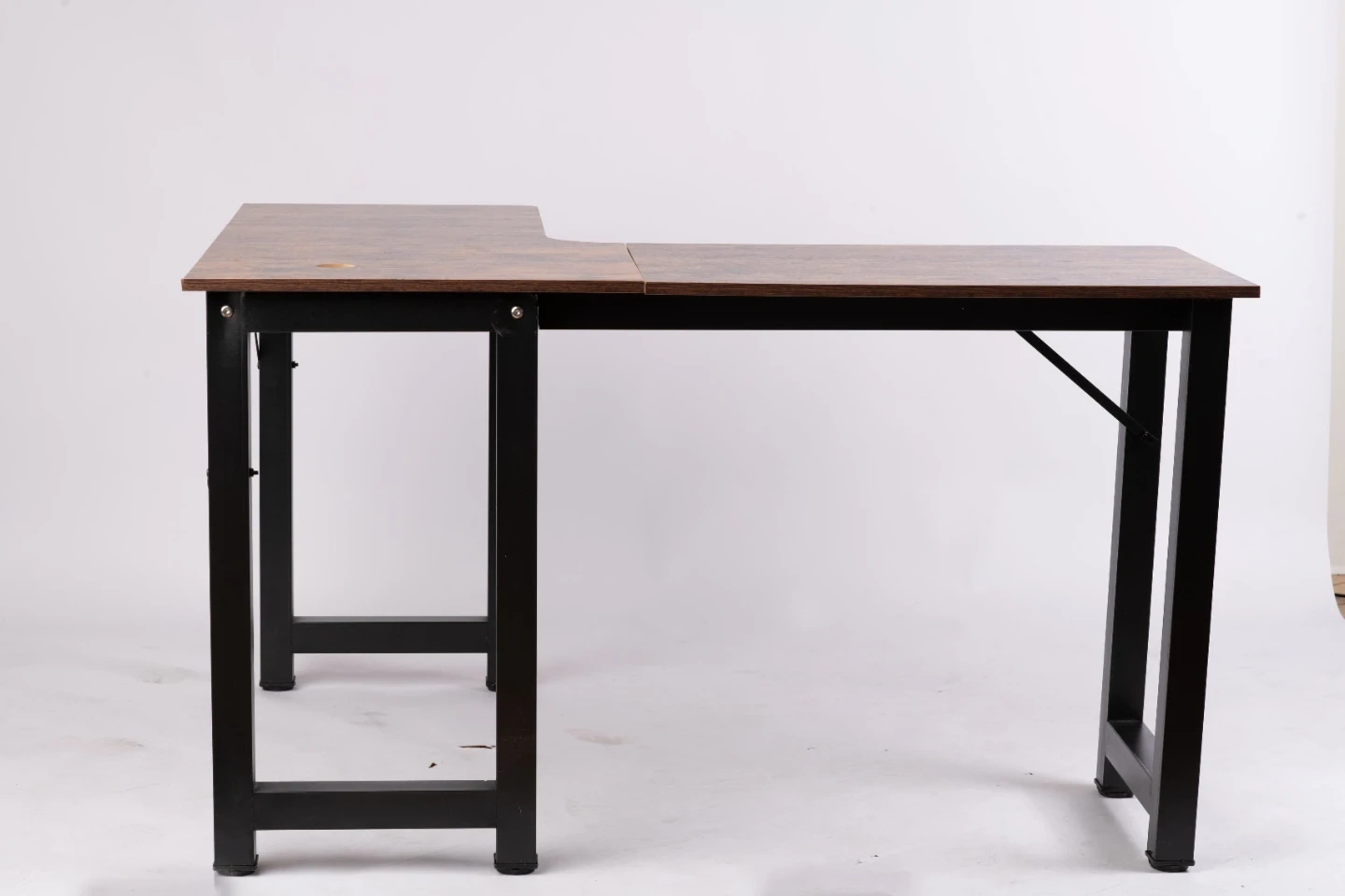 Looking to sell my L-shaped corner desk. It features a brown wood-look top and a sturdy black metal frame. Perfect for a home office or study space!