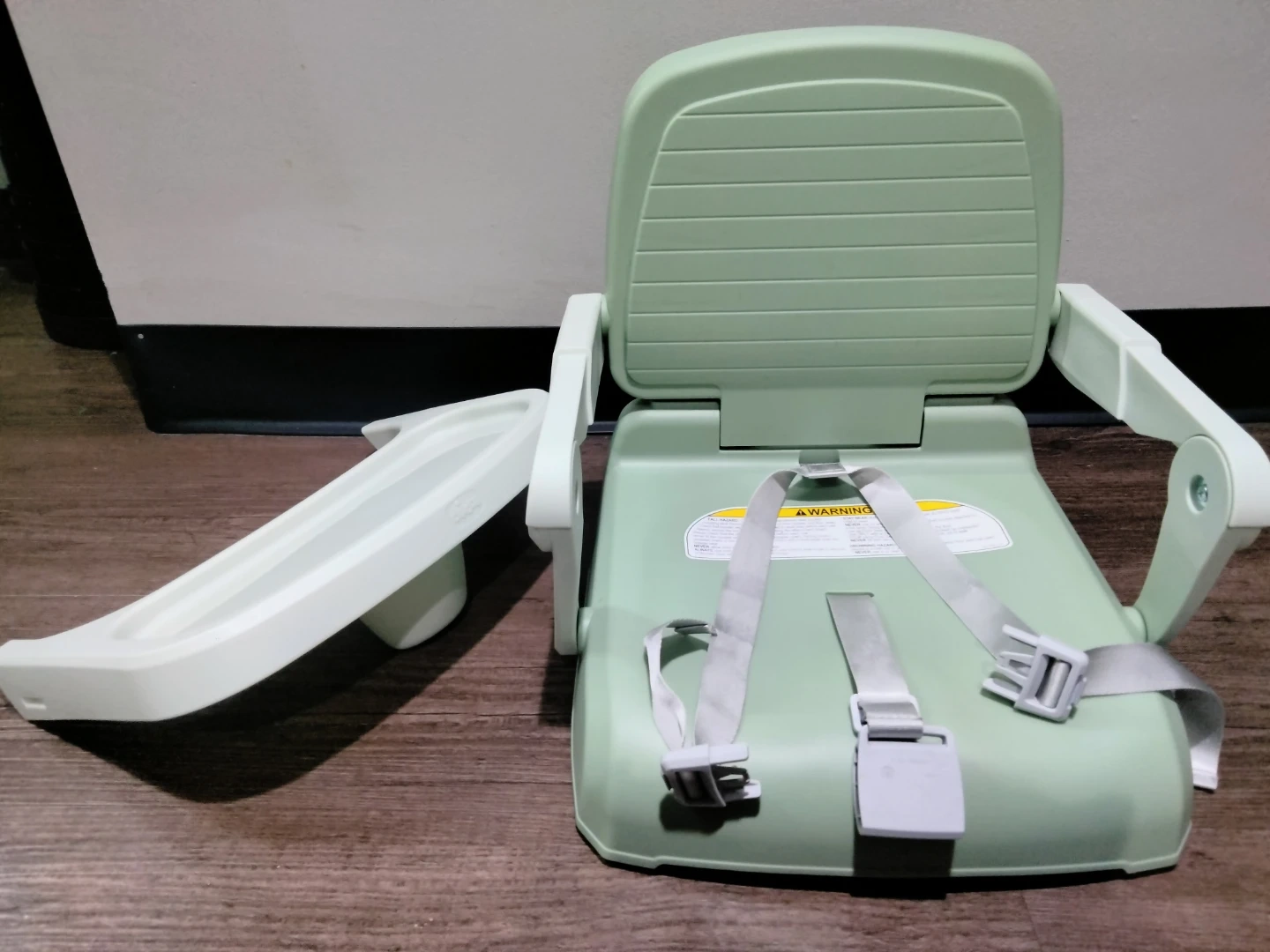 The removable tray is BPA-free and easy to clean. Plus, it folds up compactly with a built-in carry handle for grab-and-go convenience! Recommended age range is for babies and toddlers who can sit up unaided.