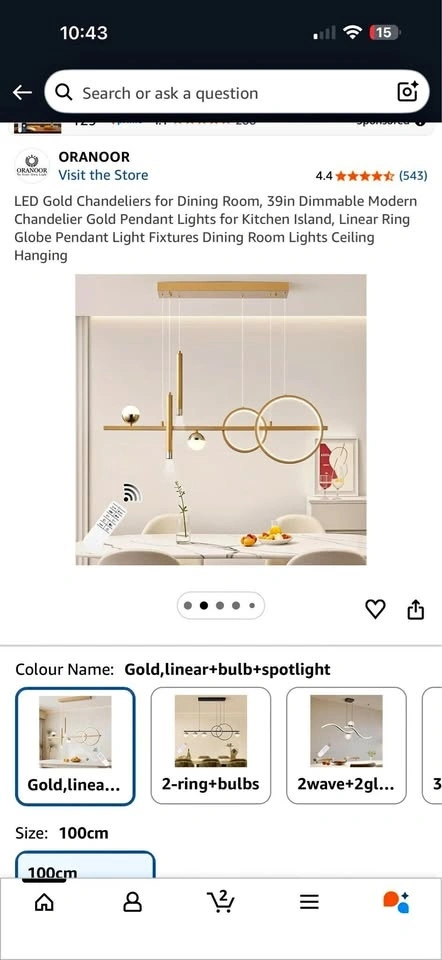 Upgrade your space with this stunning, high-end Modern Gold Chandelier. Perfect for dining rooms, kitchen islands, or living areas! This linear pendant light combines elegance with a futuristic geometric touch. Condition: Brand New / Like New. Features: Dimmable LED (Adjustable brightness with remote control) π‘. Design: Linear bar with integrated rings, globe bulbs, and spotlights. Size: 39 inches (100cm) - Ideal for medium to large tables. Finish: Luxurious brushed gold/brass π. Includes: Remote control for easy atmosphere adjustment. Give your home that "luxury hotel" feel!