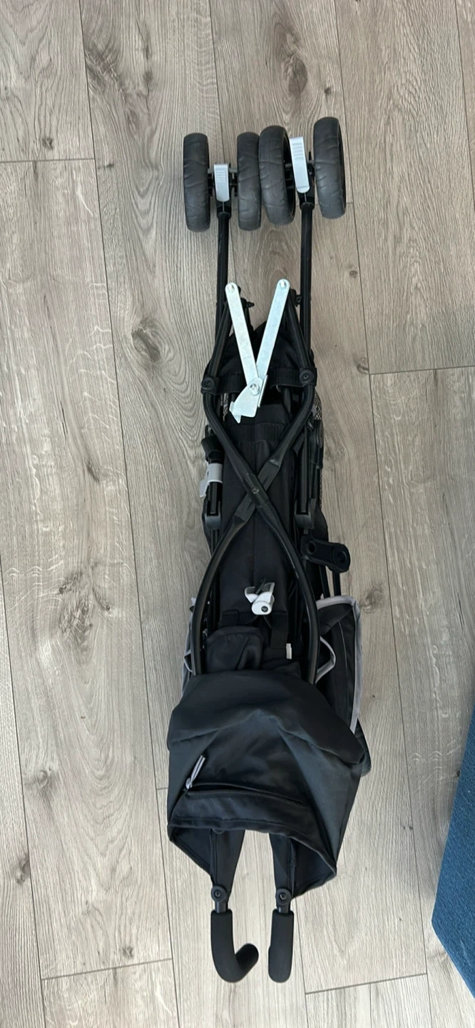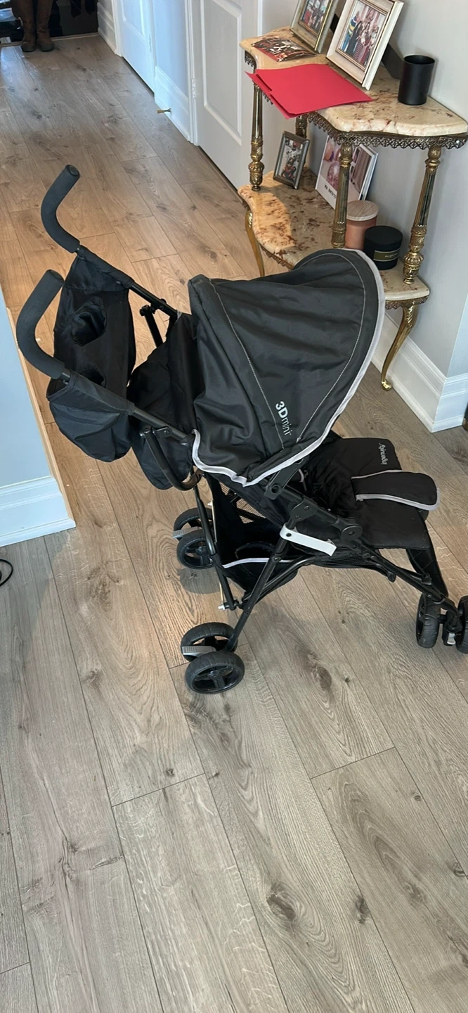 Never used …..This black Ingenuity 3D Mini stroller is a lightweight and compact option for on-the-go parents. It features a durable frame and easy-fold design, making it convenient for travel. The stroller has a comfortable seat with a safety harness.
