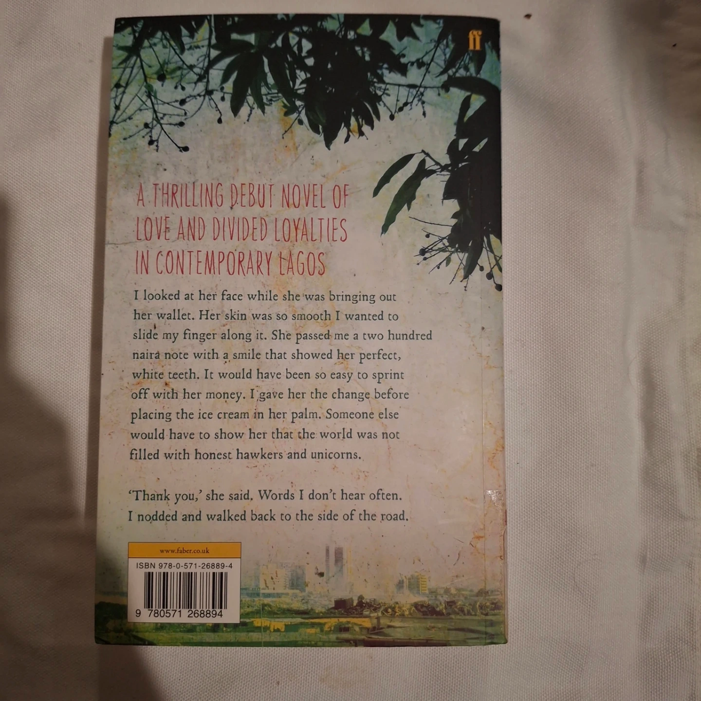 A thrilling debut novel of love and divided loyalties in contemporary Lagos. The story follows a woman's experiences and observations. It's a paperback edition with ISBN 978-0-571-26889-4.