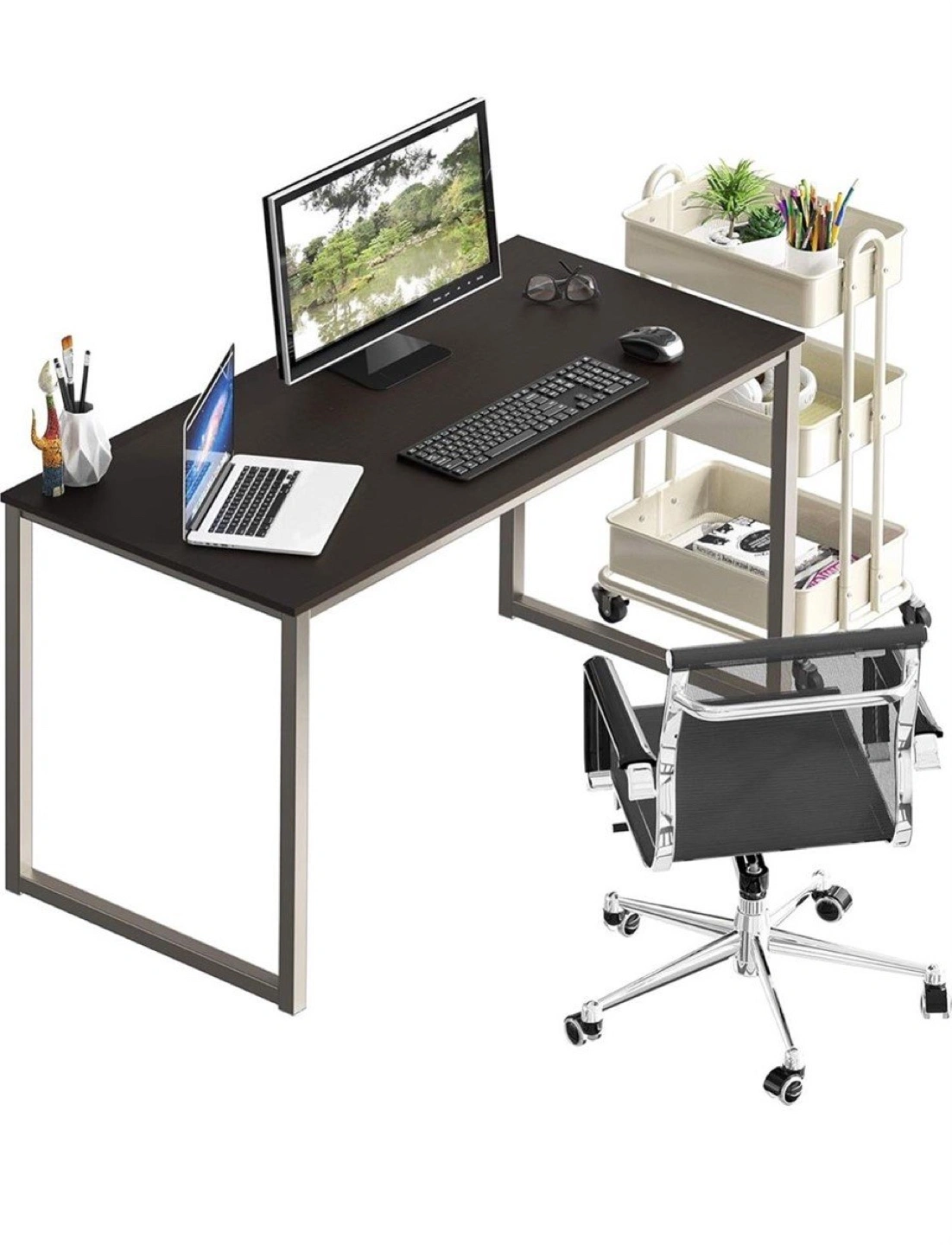 Selling a modern-style office desk! It's new and ready for a new workspace. Perfect for setting up your computer and getting work done. The desk is sturdy and has a sleek design that would look great in any home office
