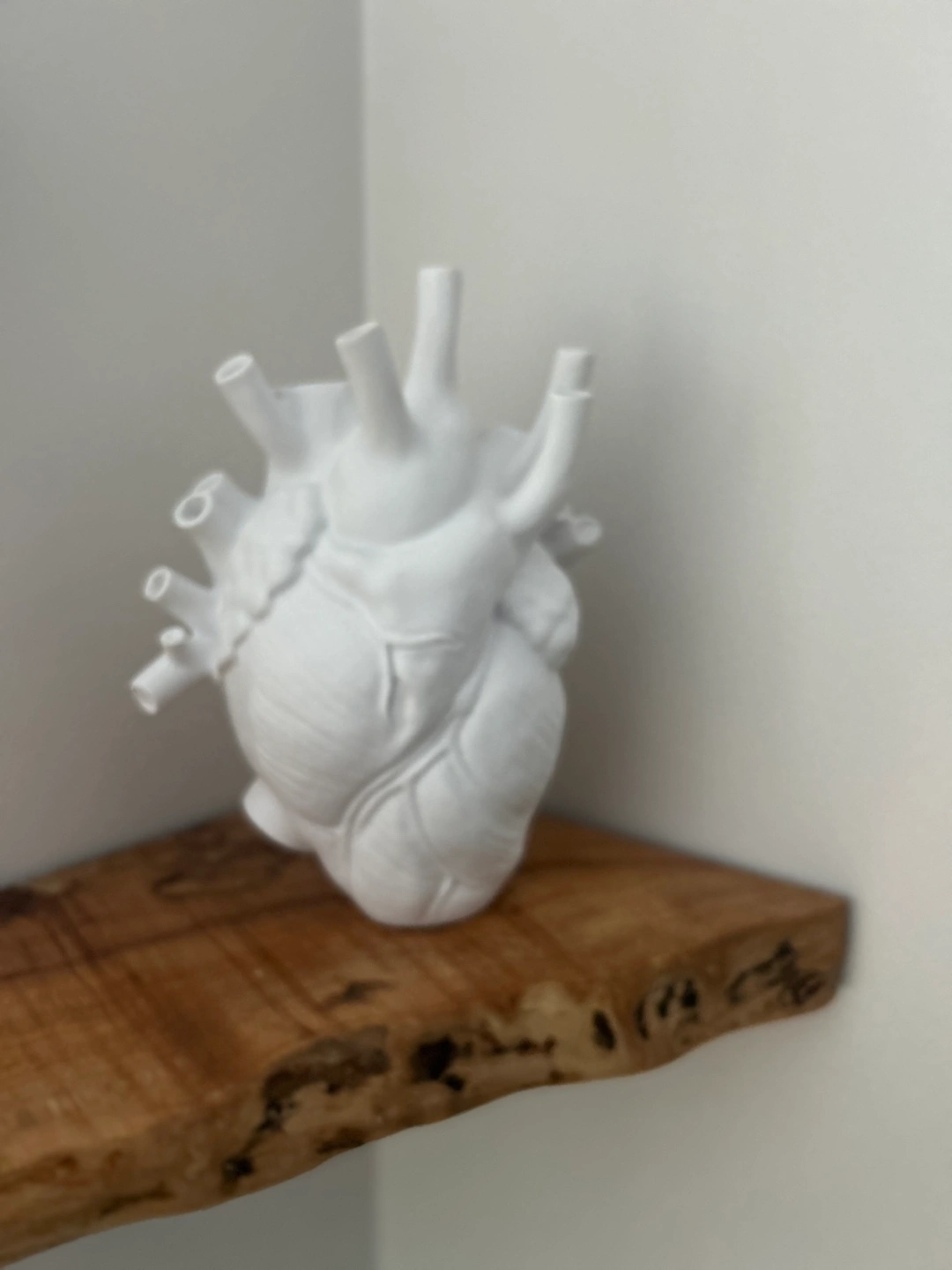 Unique white ceramic vase. Shaped like a human heart. Multiple openings for flowers or stems. Modern and stylish décor piece.