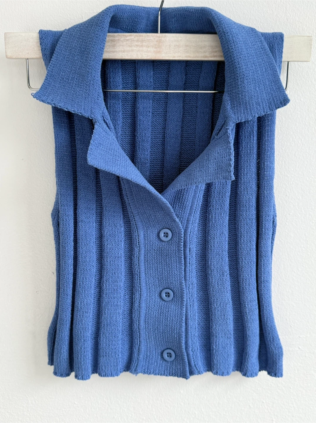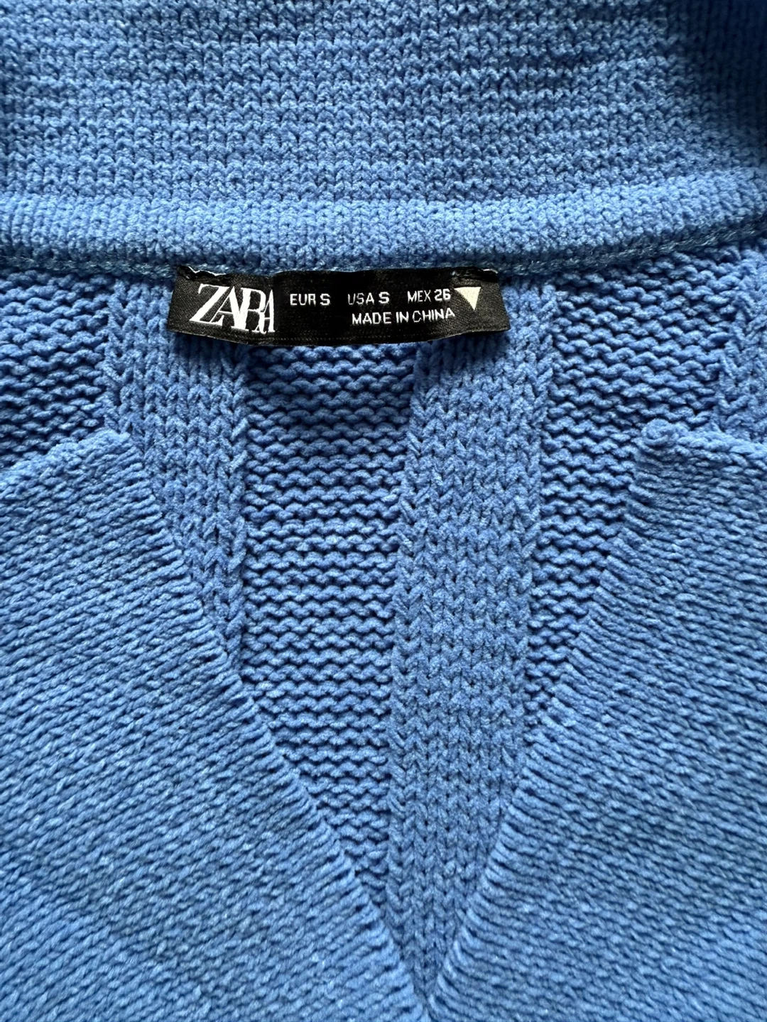 Here's a lovely Zara knit vest in a beautiful shade of blue! It's a size medium and in great condition. Perfect for layering or wearing on its own.