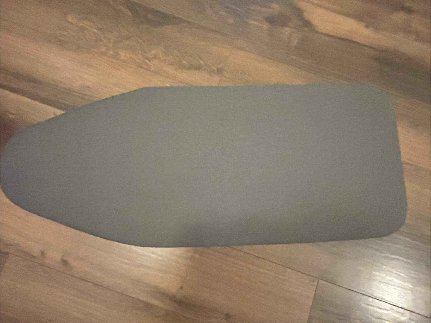 This is a compact tabletop ironing board. It's made with a grey fabric cover and a white metal frame. Great for quick ironing jobs on sleeves or pant legs!