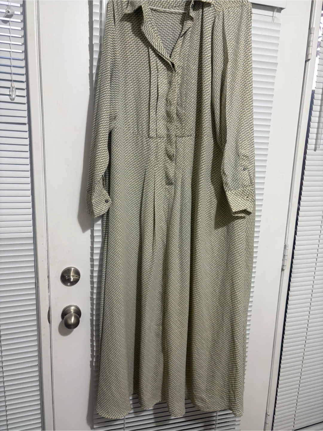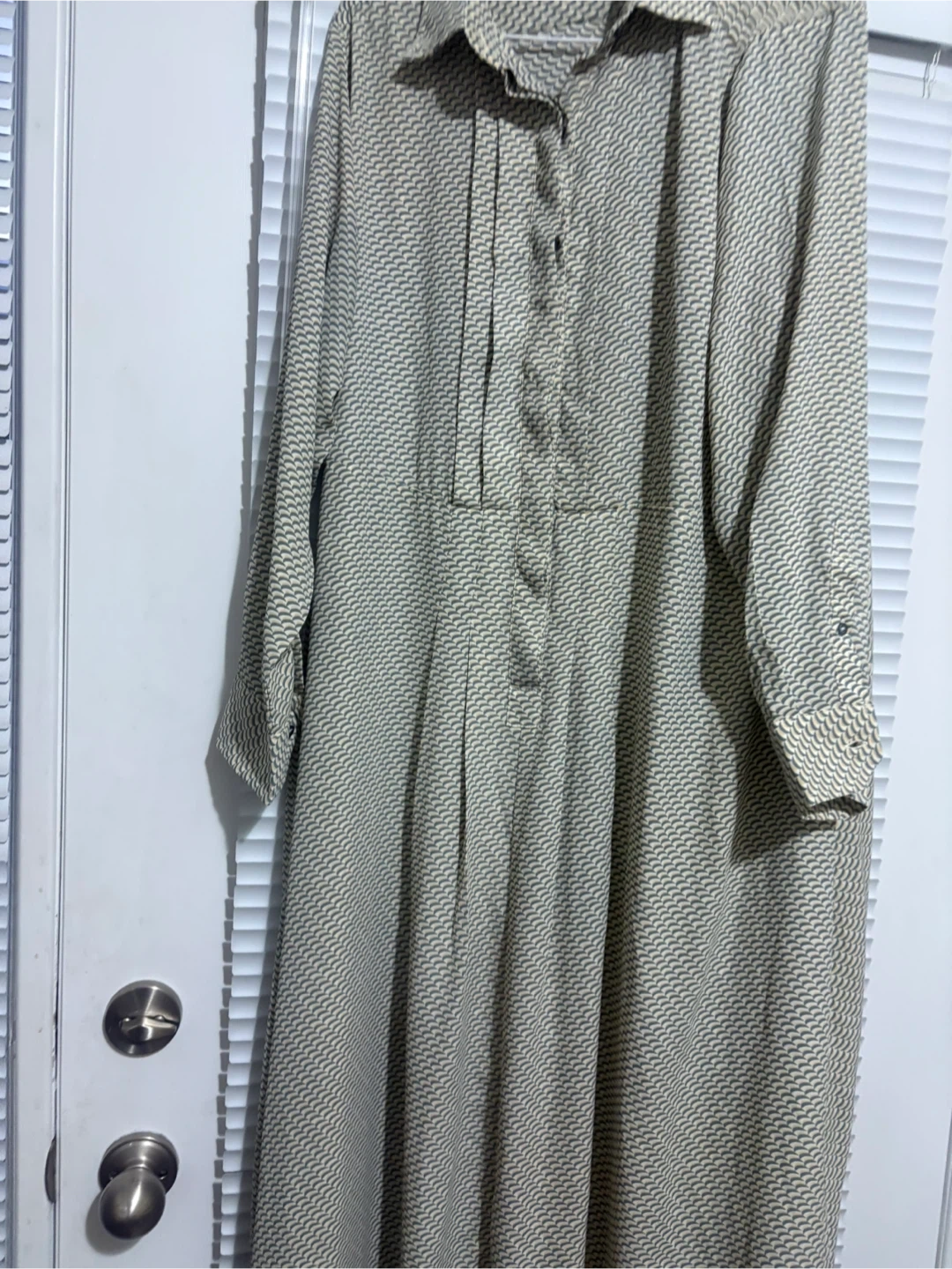 Here's a lovely patterned midi shirt dress! It's in great condition and would be a wonderful addition to your wardrobe
