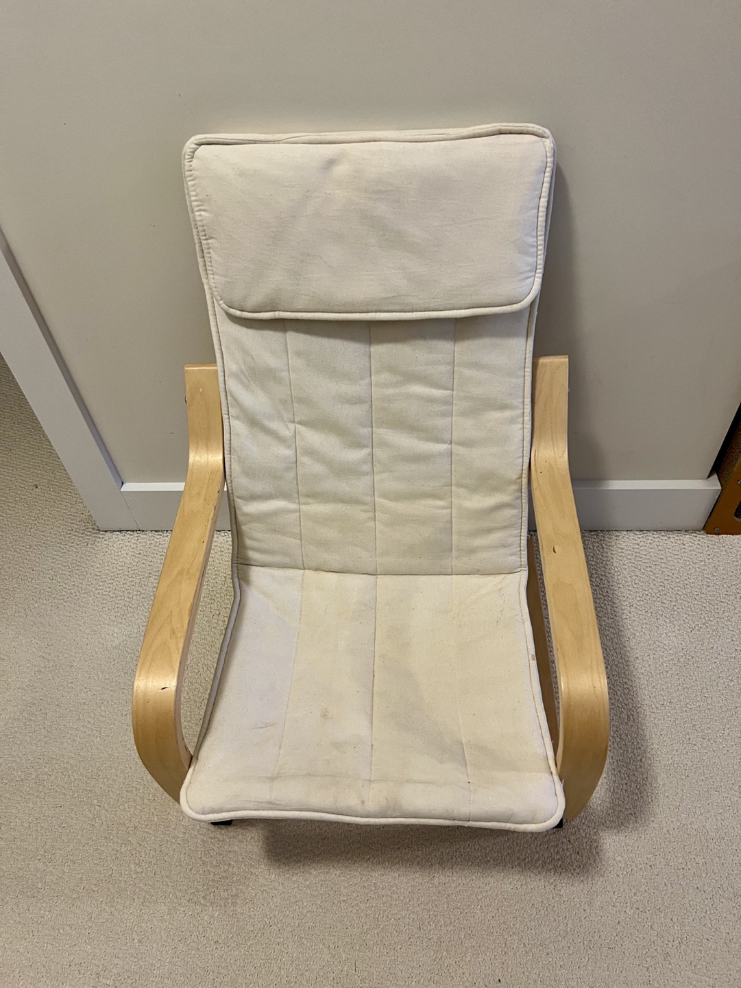 IKEA Children's Wooden Chair with Cream-Colored Cushion