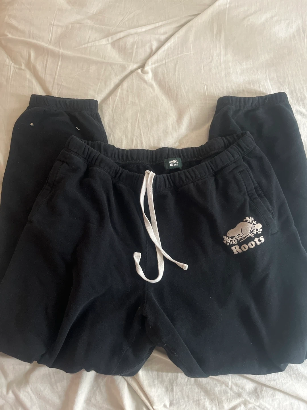 Buy & SellRoots Black Sweatpants with LogoRoots Black Sweatpants with Logo$10Black sweatpants from Roots featuring the iconic beaver logo on the left leg and 'ROOTS' across the back. Made for comfort and casual wear.SizeMediumBrandRootsWHERE TO MEETCheck LocationView MapSELLERverifiedrachelBay Street Corridor47531 reviews0 chats·1 favorites·8 viewsSEND CHAT TO SELLERHi rachel! I’m interested in your listing.Hi rachel! I’m interested in your listing.Get the Karrot app to chatSign In to chat