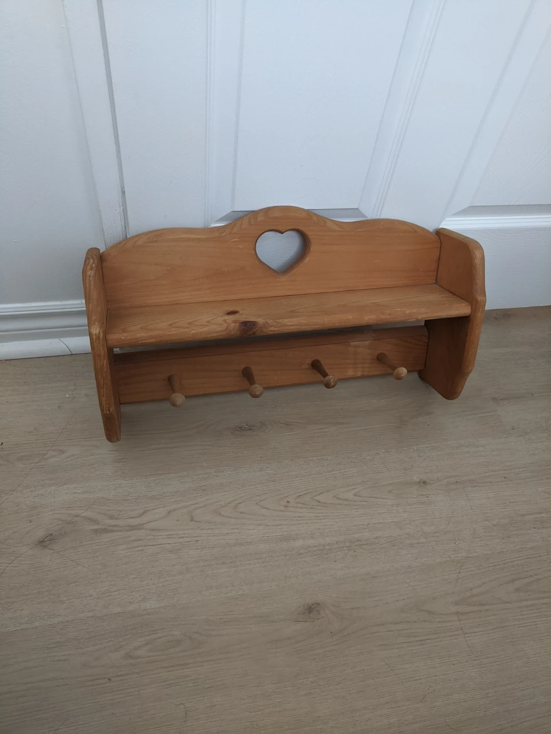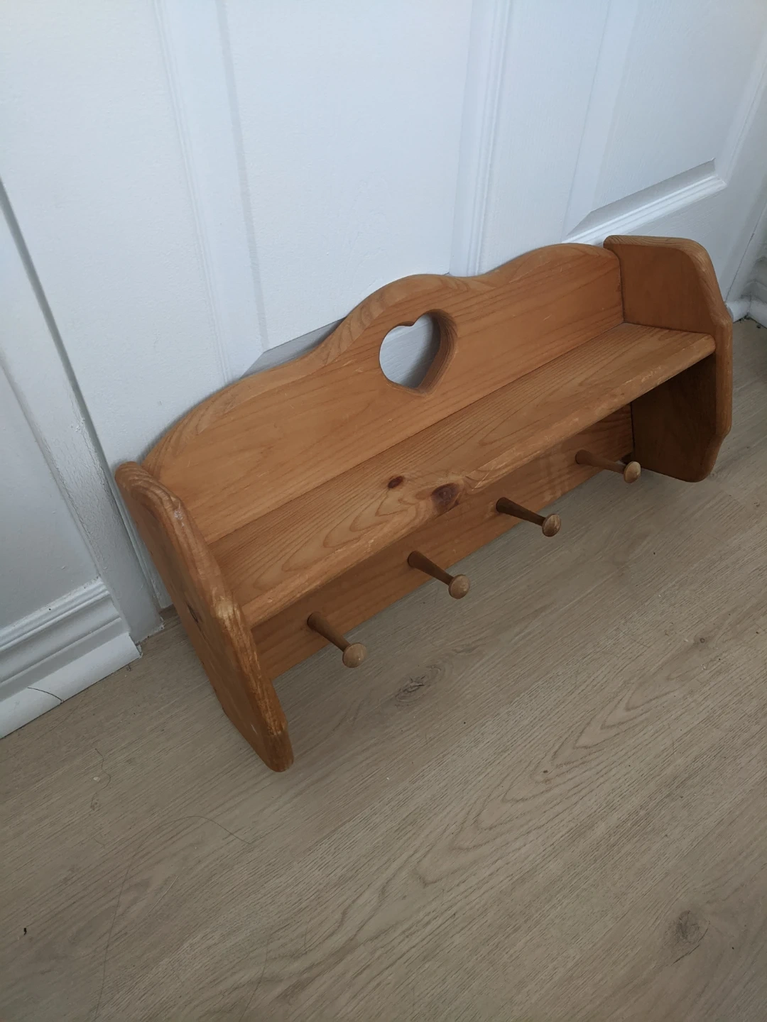 Wooden Shelf with Heart Detail and Hooks