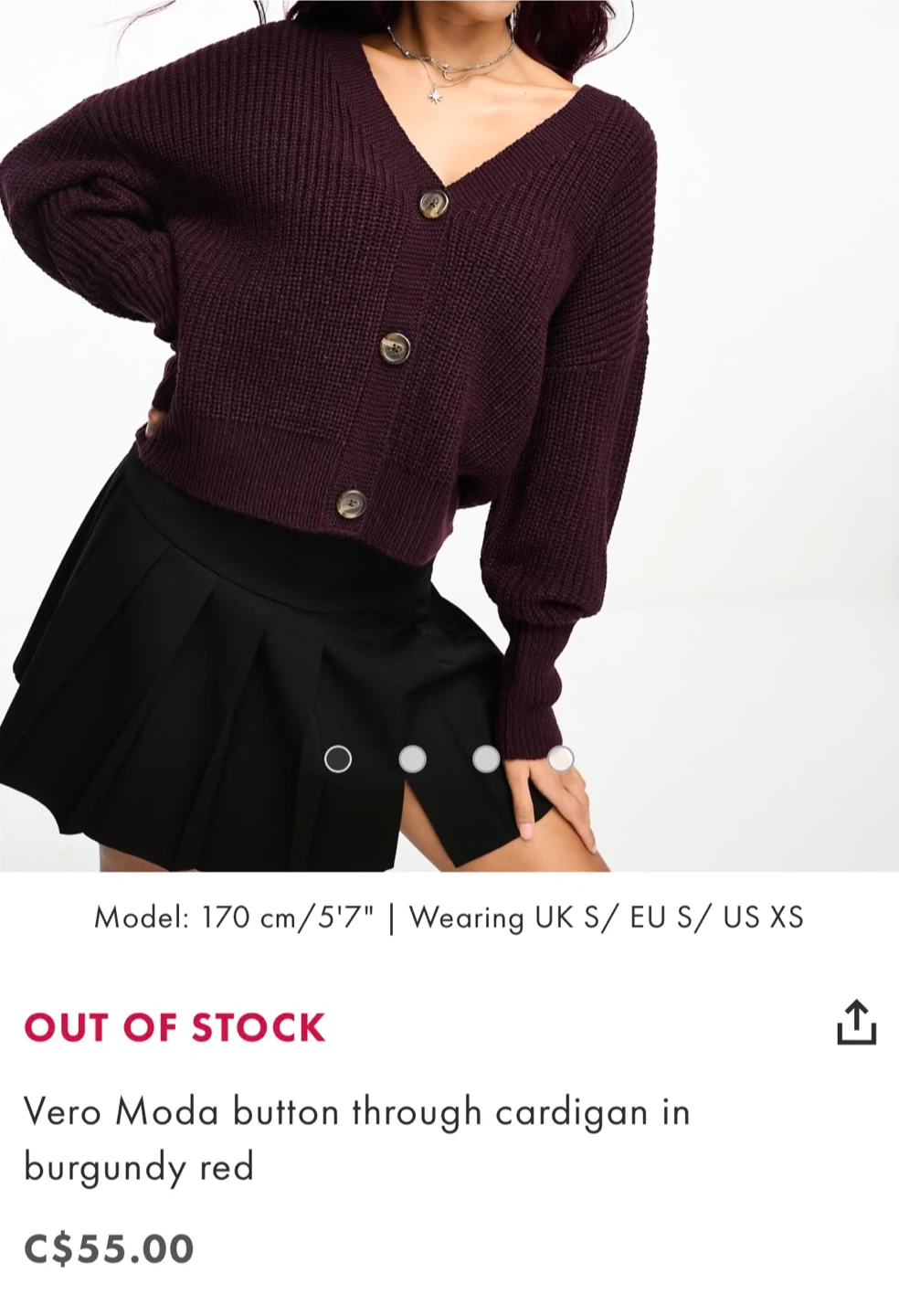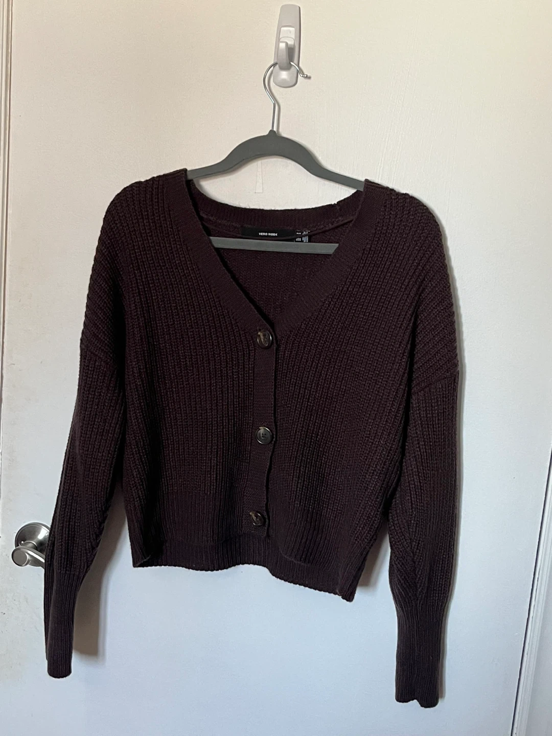Knit burgundy button down cardigan from Vero Moda. Good for layering and chilly weather. Cute and comfortable.