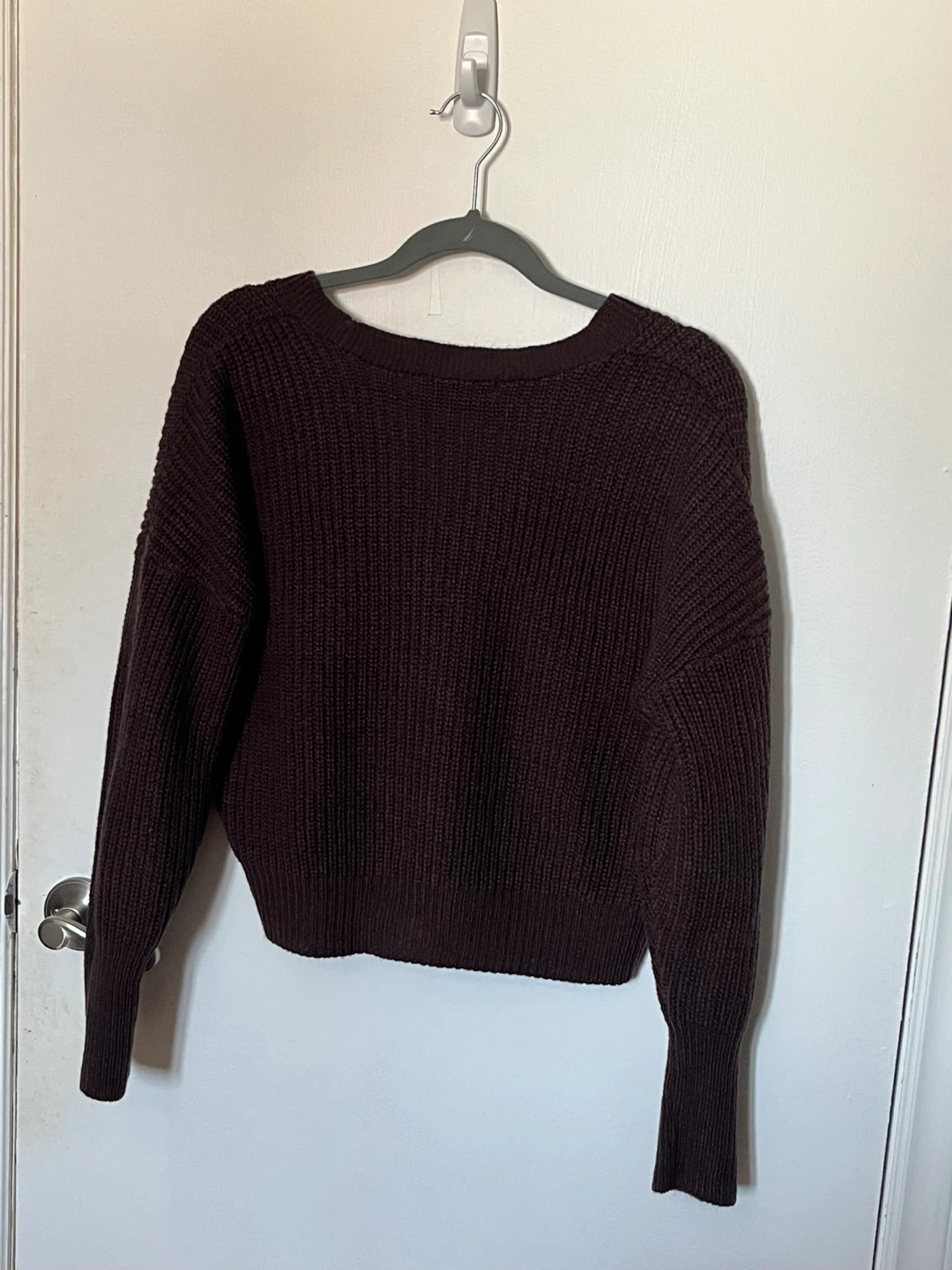 Knit burgundy button down cardigan from Vero Moda. Good for layering and chilly weather. Cute and comfortable.